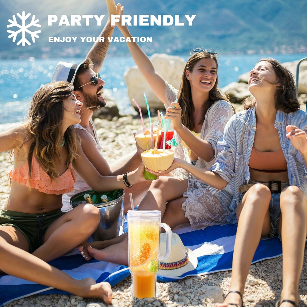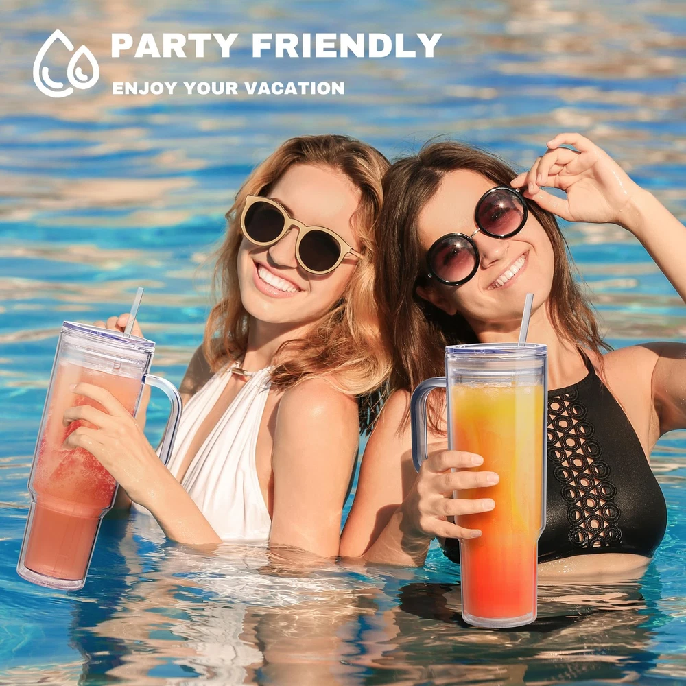 MEWAY 40 oz Acrylic Tumbler with Handle and 4 inches x 12 inches, Transparent Product Details DOUBLE WALL HANDLE DESIGN: 40 ounce large capacity cup with handle, double-layer anti sweat, to prevent the cup from dirtying the table and countertop. Make your drink magically suspended in the air, beautiful and practical ON BPA: Advanced acrylic plastic structure, food grade material, non-toxic, safe to drink SUITABLE FOR VARIOUS OCCASIONS: suitable for indoor work, parties, pouring different drinks to enjoy your vacation, juice, soda, lemon water, smoothies EASY TO CLEAN: It is recommended to wash by hand, rinse the cup clean, and do not put it in the microwave! Due to material reasons, please do not fall them on the ground, otherwise they may be damaged NOTE: Packaging damage is inevitable during logistics and transportation. If you receive a damaged package, please take a photo and send an email. We will send you a new cup