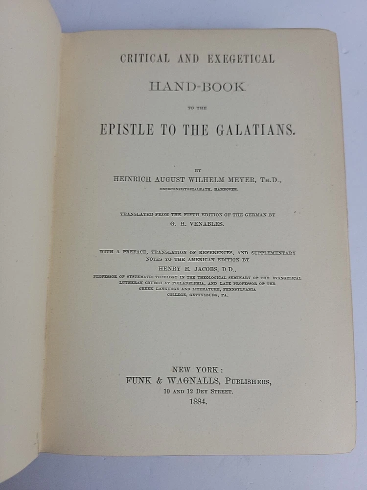 Place of Publication: New York Topic: New Testament Language: English Binding: Hardcover Author: Heinrich August Wilhelm Meyer gtin13: Does not apply Original/Facsimile: Original Year Printed: 1884 ISBN: Does not apply Subject: Religion & Spirituality Publisher: Funk & Wagnalls