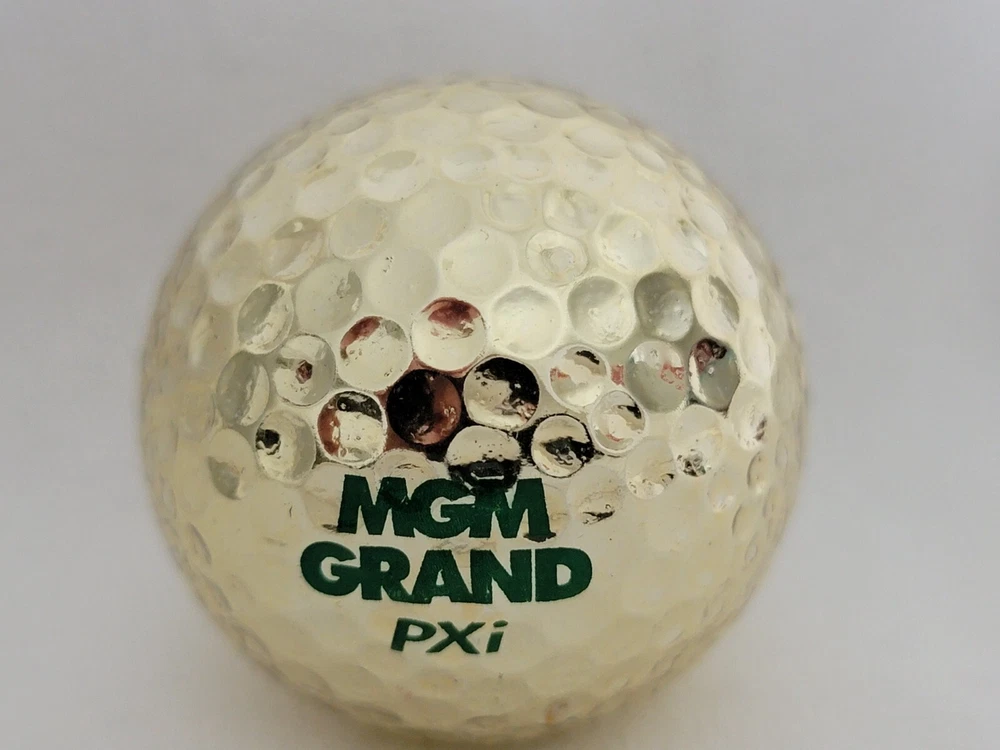 MGM Lion MGM Grand PXi Logo Golf Ball Gold colored golf ball with green imprint Please see photo for condition of logo.