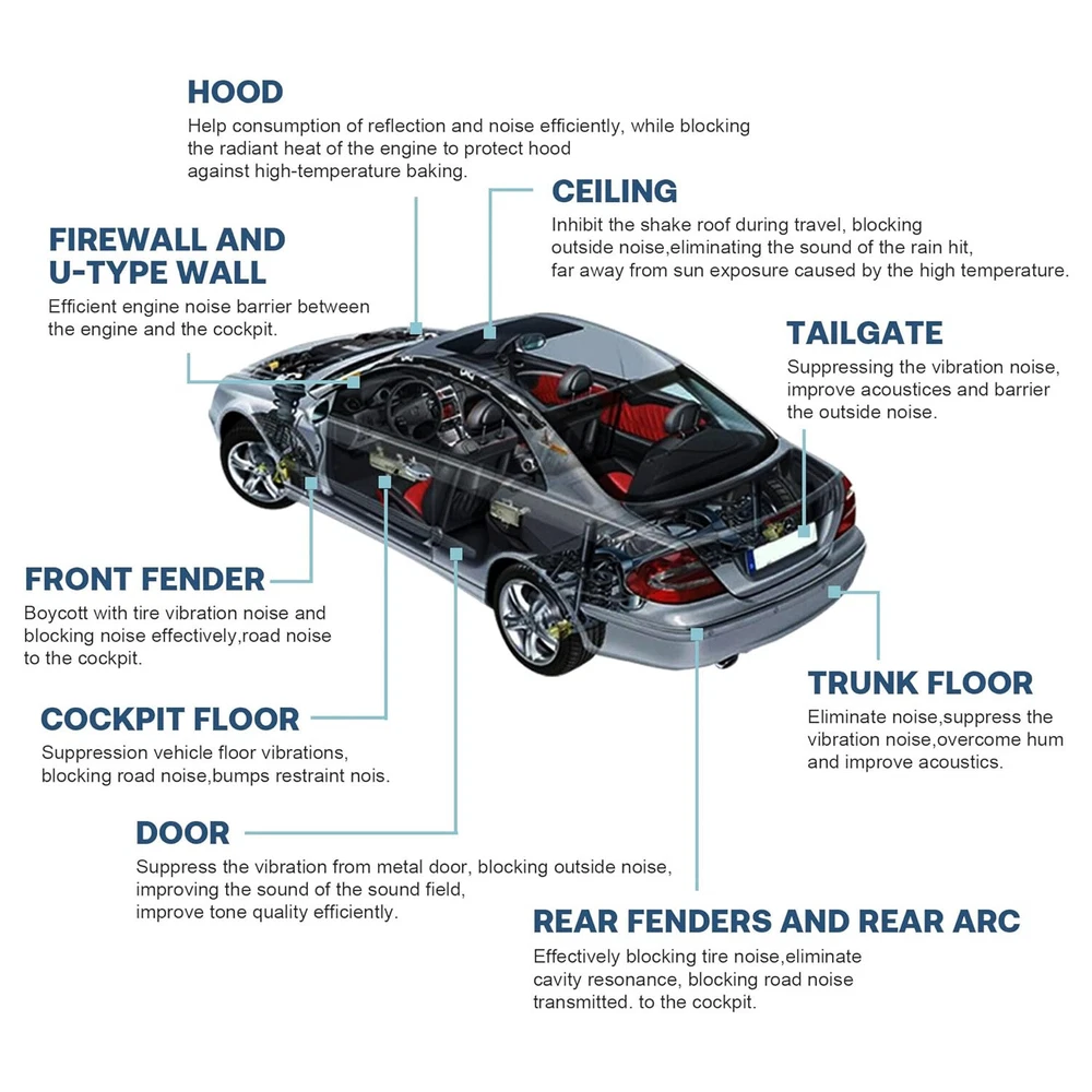 Description: Product Name: Heat Sound Deadener Insulation Mat Material: Under layer: Strong back glue; Middle layer: High density foam cotton; Top layer: Aluminum foil Size: 2M×1M (80"×39") Thickness: 3/8" (10mm) Function: Car Sound Insulation Placement on Vehicle: Front/Rear/Left/Right Reinforced / Crush Resistant: Yes Mildew & Mold Resistant: Yes Water resistant: Yes Non-toxic: Yes Package included: 1x Self-Adhesive Sound Deadening Mat Features: Migomap Best choice of motor parts MGT 80"x39" Sound Deadener Auto Insulation Heat Shield Self-Adhesive Mat Description: Product Name: Heat Sound Deadener Insulation Mat Material: Under layer: Strong back glue; Middle layer: High density foam cotton; Top layer: Aluminum foil Size: 2M×1M (80"×39") Thickness: 3/8" (10mm) Function: Car Sound Insulation Placement on Vehicle: Front/Rear/Left/Right Reinforced / Crush Resistant: Yes Mildew & Mold Resistant: Yes Water resistant: Yes Non-toxic: Yes Package included: 1x Self-Adhesive Sound Deadening Mat Features: 【 Reduce road noise】If you often drive on uneven roads or on noisy highways, sound insulation can bring you more comfort. It will reduce the noise of roads and other drivers. It will make your driving smoother and have the added benefit of better media listening 【 Enhance the music】Use sound insulation to make your radio clearer. You will no longer have to turn it up because of traffic noise. Not only is it good for music, but audio books and telephones will sound better, too 【Improve privacy】If you don't want other people on the road to hear what you're listening to, the sound insulation prevents the noise from escaping. Sound insulation will help you 【Warm in winter and cool in summer】The car insulation will help reduce your interior temperature in the summer, and in winter, the heat insulation can keep you warm in the car, which is conducive to warmth reduce engine/tunnel/console 【Protect car paint】In summer, the temperature is too high, the engine runs at high speed and accelerates for a long time, and generates heat, which can easily cause the aging and fading of the car paint; the heat insulation pad can protect it 【Increase the life of the car】In summer, due to high temperature and long-term driving, it is easy to cause the cabin to heat up and cause a fire, which may seriously damage your car. Using heat insulation pads can extend the life of the car Installation Remove the door panels Install the screws back in original place, it will easy be found when you mount, avoiding holes be covered With roller tools will make insulation materials and sheet metal firm fit, and play best adhesive, damping performance According to the effect you want choose construction program, only single Soundproof/Damping Plate or single Heat and Noise Insulation Cotton or Both them. You can also use on car roof floors, hood , firewall, chassis, trunk room, trunk lid and so on.. Do not cover the chassis wiring or air holes. Note: 1.The real color of the item may be slightly different from the pictures shown on website caused by many factors such as brightness of your monitor and light brightness. 2.Please allow slight deviation for the measurement data. 3.Please allow 1-3cm error due to the hand measurement . If you have any questions, please contact us. Wish you have a happy shopping time! Item Specifics Brand MGT Type Car Truck Noise Reduce Dampening Material Aluminum & Foam Placement on Vehicle Cargo/Trunk/Bonnet/Dashboard/Under Seat/Doors Color Silver&Black Features Foldable size 80"x39"=21sqft Universal Fitment Yes Application 1 Hood,Firewall,Doors,Floor,Roof Application 2 Ceiling,underneath Bonnets,Underfelt Application 3 Automotive,Motorhome,Camper,Restorer Application 4 Van,Truck,limousine,Camper,Boat,Motor Homes,School Bus,Low Rider Application 5 Cockpit Floor, Tailgate, Firewall U Type Wall Application 6 Car& Home Interior Heat Sound Deadener Insulation Function 1 Protects Paint from Blistering Function 2 Protects Paint from Blistering Function 3 Easy Installation, Waterproofing, Fireproofing Easy Installation All Curves and Corners Without The Need For Heat Manufacturer Warranty 2 year Interchange Part Number Deadening Material Insulation Cars & Truck Superseded Part Number Heat Sound Deadener Insulation Mat For More Detail Please View in Description Features 1 Noise Reduction, Easy to Cut, Self-Adhesive Features 2 Easy Installation, Waterproofing, Fireproofing Features 3 Protects Paint from Blistering, Anti-moisture Application 7 Classic Car,Race Car,Stock Car,Old Vintage Car,Pickup,SUV,Caravan Application 8 Van,Truck,limousine,Camper,Boat,Motor Homes,School Bus,Low Rider Application 9 Muscle car/Hot rods/Corvettes/Imports/Tuners/Street rods/Rat rods Application 10 Cockpit Floor, Tailgate, Firewall U Type Wall Application 11 For Use in The Application Of Any Sound Deadening Application 12 Car& Home Interior Heat Sound Deadener Insulation Thickness 10mm = 393mil Item Length 2M = 80Inch Payment 1. It will be much appreciated that you finish your payment asap or it will make UPI (unpaid item case) on your account leading to be suspended or restricted by eBay when those UPI cases carry over to certain amount. 2. Any problems please contact us for more details. Shipping 1. All items will be shipped to buyer's ebay address. 2. All items will be shipped within 24-48 working hours upon receipt of payment, and multiple items will be combined shipping. 3. In most cases, delivery takes around 3-5 business days, it's highly depended on the efficiency of the shpping carrier. If your item doesn't arrive on time, please contact us immediately for further assistance. Please note there is no local pickup service available. Returns If you are not 100% satisfied with your purchase, you can return the product and get a full refund or exchange the product for another one. Please Note: Please write us a message before your return, otherwise we will not accept the package. Any product you retur