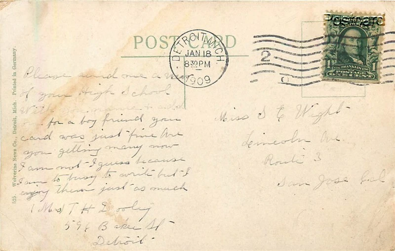 Early Printed Postcard Detroit, Michigan, Woodward Avenue Postmark: 1909 Image: Nice and clean Corners: Wear Faults/Other: SKU: 31276 Powered by SixBit's eCommerce Solution