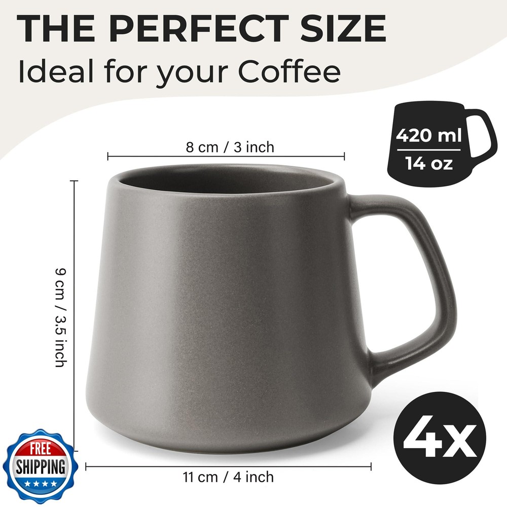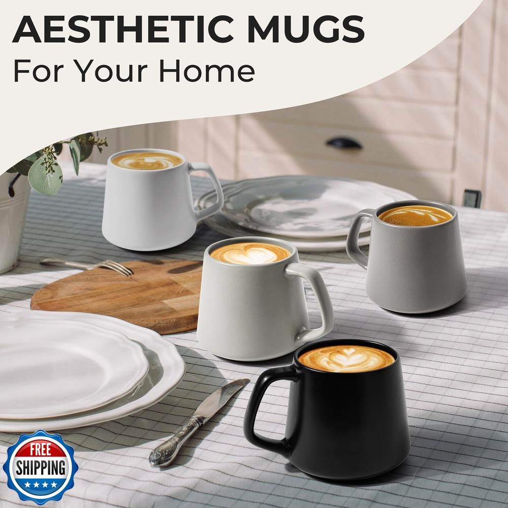 MIAMIO - Coffee Mugs Set of 4 / Large Ceramic Coffee Cups (14 oz) - Mug for Cappuccino, Tea, Espresso - Microwave and Dishwasher Safe - Luxe Collection (Classic Pastel) Features πππ π ππ πππ πππ β The MIAMIO coffee cups set includes 4 high-quality stoneware cups. Each coffee mug has a generous capacity of 14 oz, offering ample space for your favorite beverage, whether it's cappuccino, tea, mocha, or latte macchiato. These cups are perfect for serving coffee for four people. πππππππππ ππππππ β Each tea cup stands out with its elegant and minimalist design. Additionally, these pretty coffee cups are available in popular colors such as black, beige, white, and gray. This makes them a perfect fit for any modern home or kitchen and a great gift for friends or family. πππππππ πππ ππππ-πππππππ β Our MIAMIO coffee mugs are lovingly and carefully made from durable stoneware. We ensure that each ceramic cup meets our high-quality standards. This makes our mocha cup set particularly easy to care for, long-lasting, and robust, so you can enjoy them for a long time. πππππππππ πππ ππππππππππ πππ π β Our ceramic cups are easy to clean in the dishwasher. Additionally, the tea cup set can be used to heat beverages in the microwave. This makes each coffee cup not only stylish but also super practical for everyday use. Our sturdy ceramic wall design also keeps drinks hot for longer. πππ ππ π ππ πππππ/πππ β This MIAMIO cappuccino cup set comes securely packaged in a beautiful gift box. This makes our coffee mugs the perfect home gift for girlfriend, boyfriend, parents, or grandparents. It is also a thoughtful present for housewarmings, Christmas, Valentine's Day and Mothers Day. Shipping Free & Fast Shipping: We offer free shipping to most of the USA with a normal delivery time of 3-7 days. However, due to the current situation, additional delivery time (up to 3 weeks) may be required for some items. Alternative Carriers: We may use alternative carriers (e.g., USPS, FedEx, UPS) to ensure your package arrives safely and on time. Due to the use of multiple carriers, we are unable to provide a tracking number automatically. Handling Time: Orders are processed and shipped within 1-2 business days of receiving cleared payment. Shipping Restrictions: Shipping to Alaska, Hawaii, Puerto Rico, Guam, and other US territories may incur shipping charges or delivery restrictions. Please contact us before ordering, or your order can be refunded/cancelled. State Restrictions: Certain items may not be shipped to California due to state regulations. Contact for Tracking Updates: If you require tracking updates or have any concerns about the delivery of your order, please feel free to contact us, and we will be happy to assist you. Return Policy 30-Day Hassle-Free Returns: If you are not completely satisfied with your purchase, you can return the item for free within 30 days of receiving it for a full refund or exchange. Easy Return Process: Contact us, and we will provide you with a prepaid return shipping label and detailed instructions. No Restocking Fee: There are no restocking fees for returns. However, the buyer is responsible for return shipping costs if the return is not due to a seller"s error. Refund Processing: Refunds will be processed within 1 business day of receiving the returned item in its original condition. Feedback Your feedback is extremely important to us. We strive to provide the best products and customer service possible. If you are satisfied with your purchase, please take a moment to leave us a positive review. If you have any concerns or issues with your order, please contact us before leaving negative feedback. We are committed to resolving any problems and ensuring your satisfaction. Contact Us If you have any questions or concerns, please feel free to reach out to our customer support team. You can contact us through the eBay messaging system. We are available Monday to Friday, 9:00 am to 5:00 pm EST, and we will do our best to respond to your inquiry within 24 hours. Thank you for supporting our small family business!