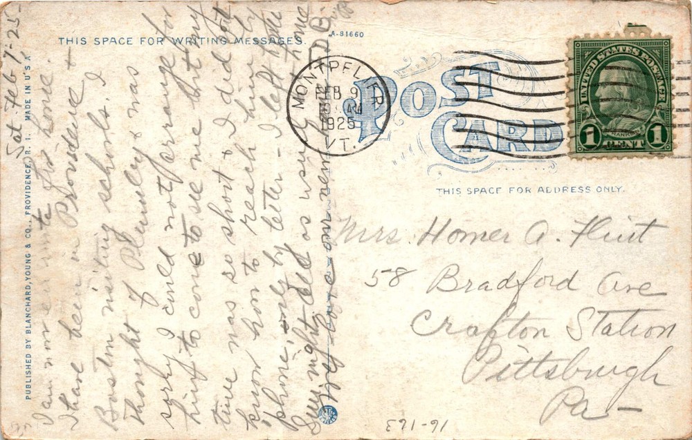 MAKE AN OFFER. THE MORE YOU BUY THE BETTER DEAL I WILL ACCEPT The postcard features a view of Middle Campus at Brown University in Providence, Rhode Island. The postcard was published by Blanchard, Young & Co. in Providence and was made in the USA. The sender mentions being in Providence and visiting Boston, as well as Plumleys and schools.
