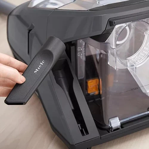 Product Features Powerful but quiet German-engineered Miele bagless canister vacuum Deep clean with Vortex Technology; 4 suction power settings Maintenance-free HEPA Lifetime Filter and Gore CleanStream Fine Dust Filter Accessories include SBD 285-3 Pure Suction Combination Floorhead, SBB 300-3 Parquet Twister Floorhead, Dusting Brush, Upholstery Tool, Crevice Tool Dimensions: 12.5"L x 11"W x 20"H Acrylonitrile butadiene styrene Made in Germany