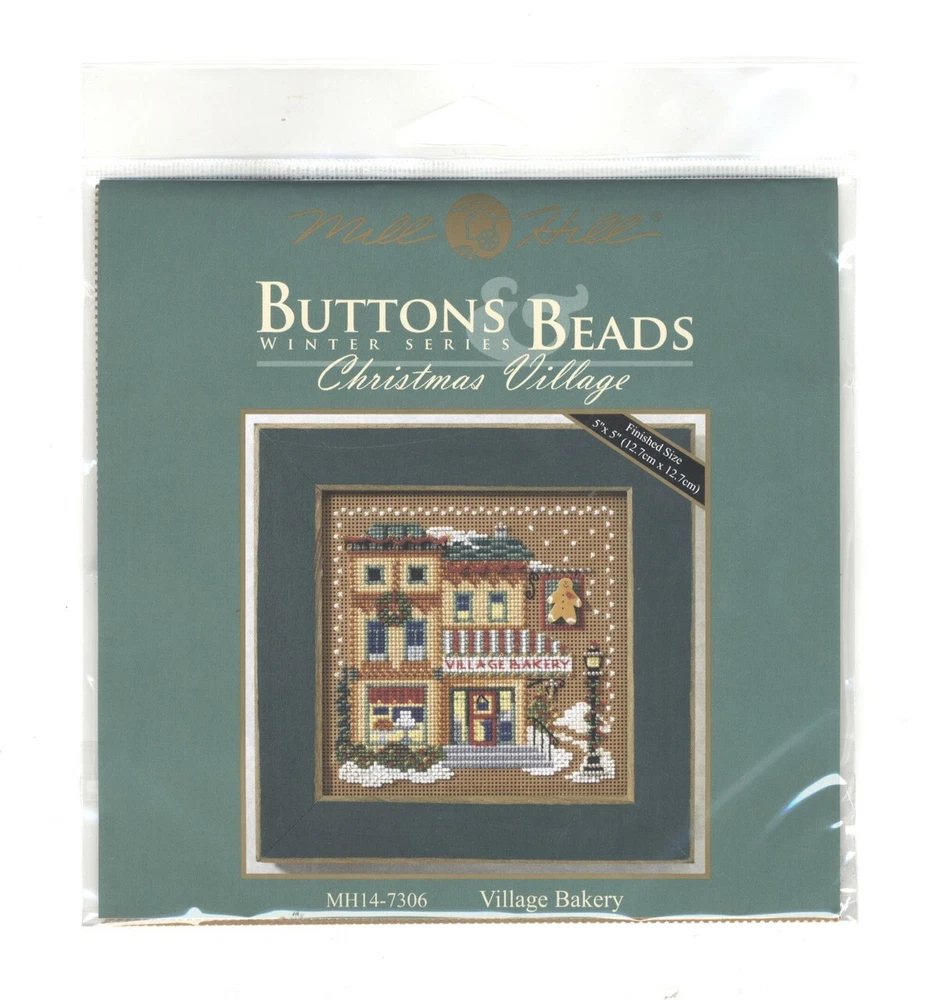 Mill Hill Button & Beads Kit - Village Bakery (Christmas Village) ***The original button in this kit has been replaced by the manufacturer with a comparable button*** 5" x 5 " Counted Cross Stitch Kit Includes: Mill Hill Glass Beads Mill Hill Button, Mill Hill 14 Count Perforated Paper, Floss, Needles and Chart with Instructions. Frame and Pin Kit not Included