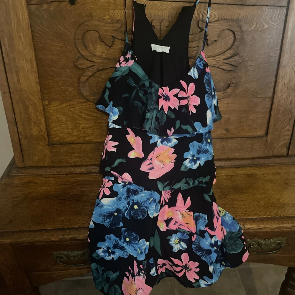 MINE bright floral print tank top shorts summer 1 piece romper women's SM. AS IS due to The missing string hole in the back to button the back with. But it is an easy sew job. Smoke free home. Ask any needed questions:)