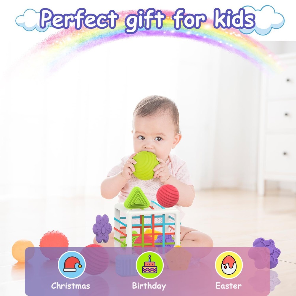 MINGKIDS Montessori Toys for 1 Year Old, 6 Pc Multi Sensory Shape, Toddler Developmental Learning Birthday Gifts, Baby Toys 12 Month [Educational toy]: MINGKIDS baby tries to push the shapes through the elastic bands and perform the sensory shapes. As a baby toy to explore and try, it awakens the curiosity of the children, helps them explore, experiment and discover. 【Safe Material】The educational toy frame made of high quality ABS plastic has rounded corners and is soft. All edges and patterns are polished to a smooth and round shape, which is comfortable and skin-friendly. [6 colourful multi-sensory shape] The six chunky shape blocks are each designed with fascinating textures that will delight the fingers. This colourful toy for toddlers and preschool children promotes colour and shape recognition, the textured shapes on a child's back or feet increase sensory perception. The educational shape sorting toys frame made of high quality ABS plastic,has rounded corners are soft, All the edges and patterns are polished into smooth and rounded shape, still clear and detailed, and high quality elastic cord is used, which is comfortable and skin friendly, not easy to deform and hurt baby’s hands. It safe and good looking, which is A great choice for parents. Montessori toys for 1 2 year old boys girls. Toys & Gifts for Babies: This baby activity cube is ideal for children's birthday / holiday / Christmas gift. Best gifts for little boys and girls. This innovative educational sorting baby toys designed for little hands provides endless hours of educational fun. Perfect as a present for your baby's first birthday, baptism, Christmas or Easter. Best Gifts for babies and toddlers 18 months and older, it can accompany your children through their childhood and let them enjoy the age of toys. Toddler toys for baby boys and girls Shipping We offer FREE shipping on all orders! We ship within Three business days of payment, usually sooner. We use a selection of shipping services such as UPS, FedEx, USPS etc. We only ship to the lower 48 states, no APO/FPO addresses or PO Boxes allowed. Local pickups and combined shipping options are not provided at this time. Return You can return a product for up to 30 days from the date you purchased it. Any product you return must be in the same condition you received it and in the original packaging. Please keep the receipt. Feedback Customer satisfaction is very important to us. If you have any problem with your order, please contact us and we will do our best to make you satisfied. Contact Us If you have any queries, please contact us via ebay. We usually respond within 24 hours on weekdays. Please visit our eBay store to check out other items for sale! Thank you for shopping at our store.