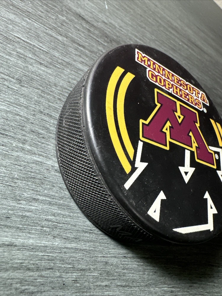Reduced shipping on multiple puck s. Please see my store for more vintage pucks This official game puck is a must-have for any Minnesota Golden Gophers fan. Featuring the team's logo and shadow image, this WCHA-approved item is perfect for collectors or as a gift for a fellow Gophers supporter. Made for the true hockey enthusiast, this puck is the ideal addition to any sports memorabilia collection.