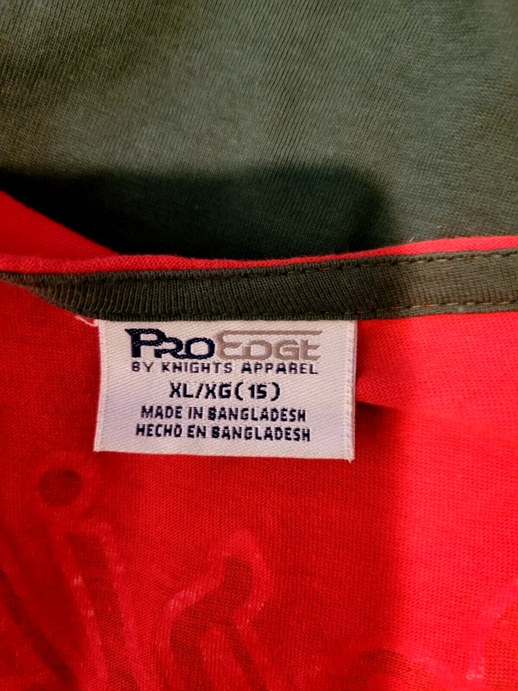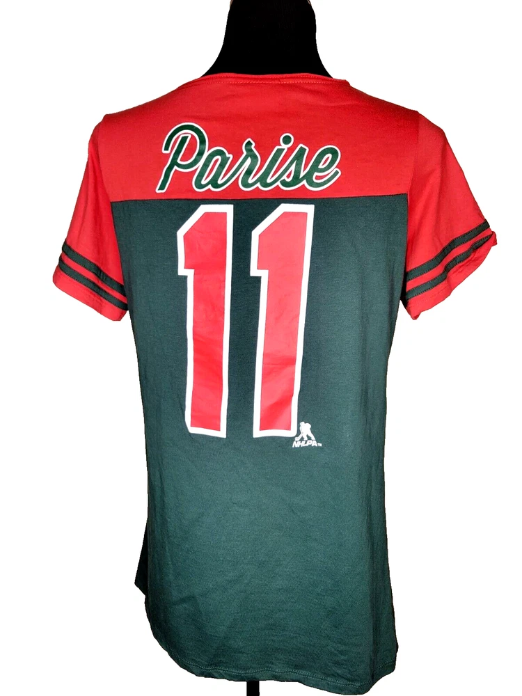 Pro Edge by Knight's Apparel Minnesota Wild NHL Hockey women's XL (15) short sleeve V-neck shirt in red and green. Parise #11 on back. Very nice condition. Chest: 18 1/2" Length: 27"