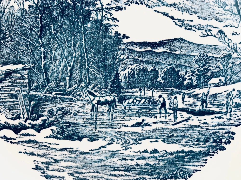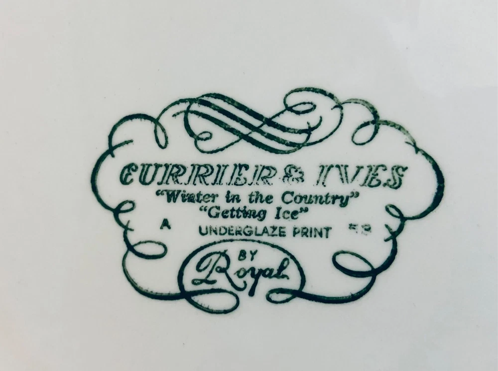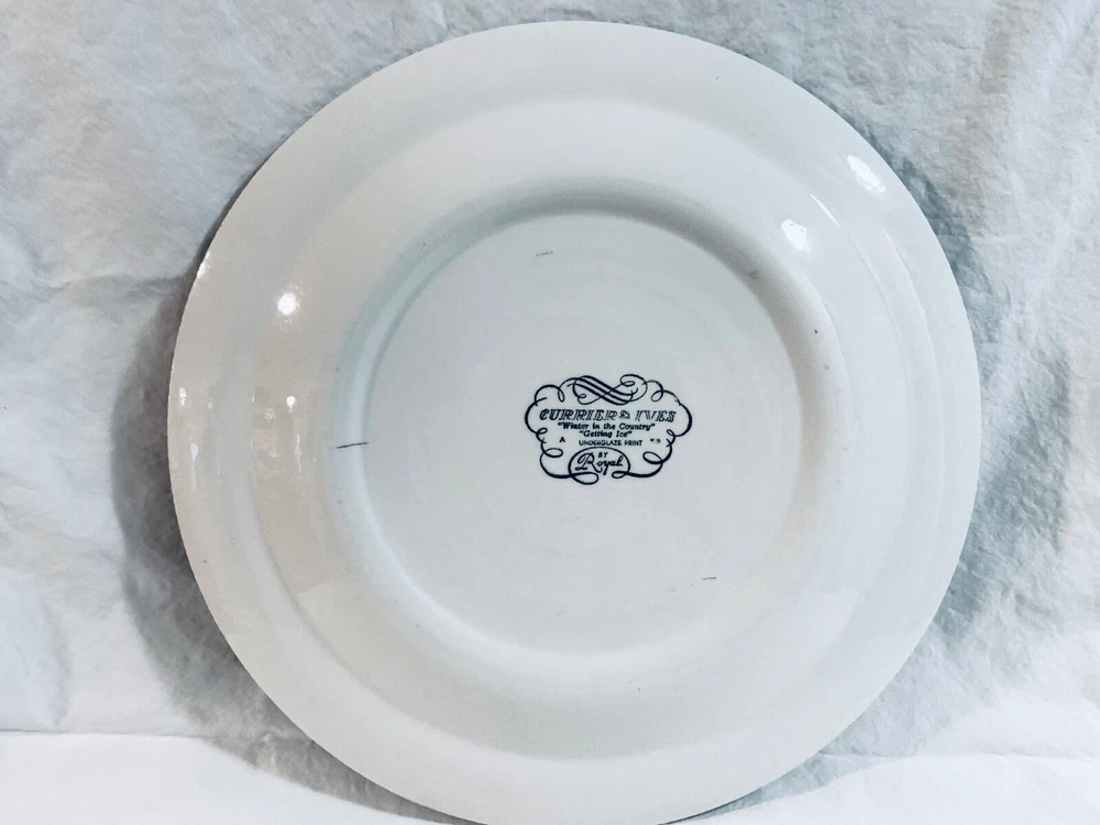 MINT Currier & Ives 12 1/2" Serving Platter (Chop Plate) Getting Ice Winter in the Country Sale is for One 12 1/2" Chop Plate Mint unused condition to look at it . No signs of scratching or chipping / it might have marks from sitting on a surface part of a display may have some crazing that is minute and I needed a loupe to see it.Also a "natural glaze pop"on the front near the edge in the blue area.. Blue transfer ware. It measures approx 12 1/4" in diameter. It weighs over 2 lbs as it sits. Safe shipping weight is the 4 pound rate as I double box items. . Money can be saved in shipping when buying multiples or adding other pieces to this. I will combine shipping - just let me know. Please be advised that during the winter months we burn wood if you are sensitive to smells. They may smell of cigarette smoke or other odors also as my items are purchased at estate sales, storage auctions, liquidation sales, thrift shops, & yard / garage sales and I have no history on them to know what environment they originally were in. They may also have pet hair on them. We have a dog . DO NOT buy if any of this is a problem for you. Please note that my shipping time is up to 3 business days. I do not take refunds for buyers changing their minds. I cannot survive as a small business person by allowing consignment shopping. I 100% FULLY will deal with any problems on a case by case basis. My apologies in advance for this but know that your items will still be guaranteed by me and eBay to be as described AND ship promptly with the utmost care or we will work together to take care of any problem.