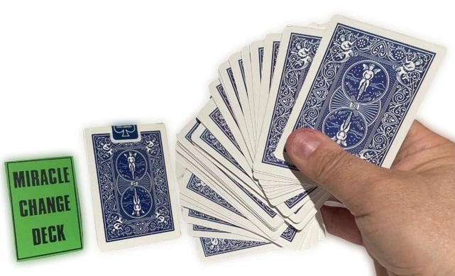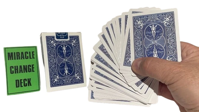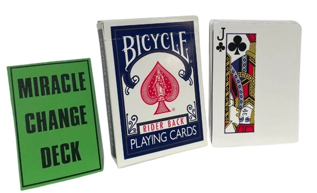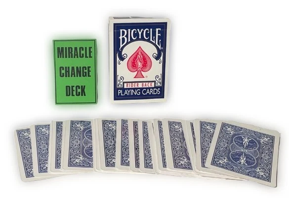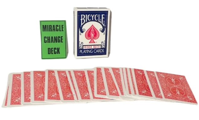 NEW Miracle Change Deck BEST PRICE ON EBAY OR ANYWHERE ELSE! Performer spreads a deck of cards on a table showing them well shuffled. He turns the cards over and spreads them again, showing all the cards are RED backs. He then turns the deck over again and waves his hands over the face of the cards. They instantly vanish and the entire deck is now blank. He now picks up the deck, waves his hands over it and the backs have all turned BLUE. Totally mechanical in working, You will require a little handling practice. The deck is supplied with a link to a video tutorial. There are no written instructions. Please note : When you open the pack for the first time, the cards all seem like a "brick" because the deck is compressed in an original Bicycle Deck Box, which is a wee bit smaller than required. (The very special decks are placed in an original Bicycle Box to look like the real thing). J ust flexing the deck and giving it a couple of riffles at the short edges makes the deck work perfectly as required. Color of Bicycle Box may vary. Enjoy this video demonstration: https://youtu.be/_cefpiKGFHw WOW FREE SHIPPING! Robb. E - 1 Please check out The Visual Comedy Shop for more great comedy and magic related items. Geist Visual Comedian DVD Geist Napkin to Bunny Gag Flash Paper Pads Spring Animals Fire Magic Magic Accessories Comedy Sword Swallow Geist Pie Throwing Gag! D'Lites Silks, Streamers & Coils PK Rings Flower Magic Stage/Box Tricks Jokes, Gags & Pranks All at the best prices here on EBAY or anywhere else!