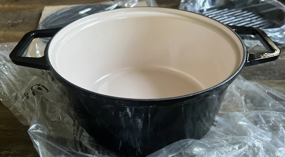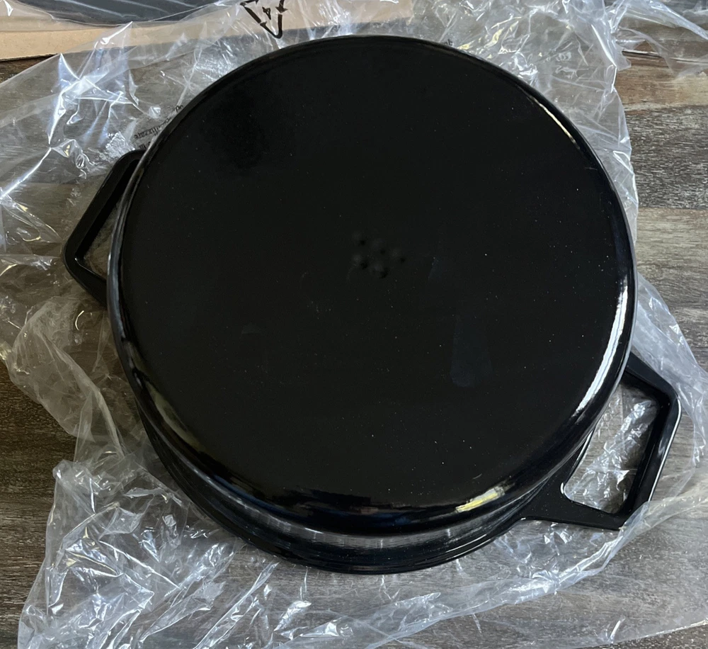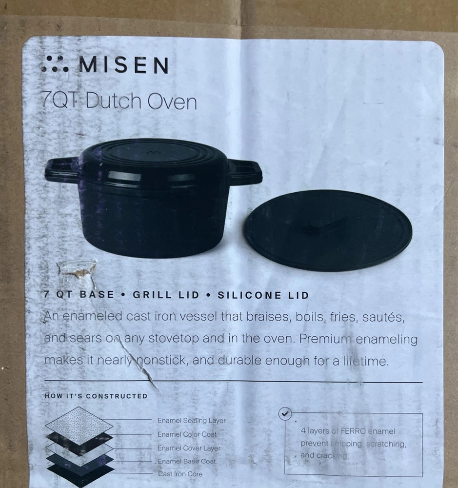 Misen 7 QT Enameled Cast Iron Dutch Oven - Chip-Resistant Enamel Coating - Thick Iron Core For Heat Retention - Large Cooking Surface - Oven Safe, Induction Compatible - Grill and Silicone Lid, Black