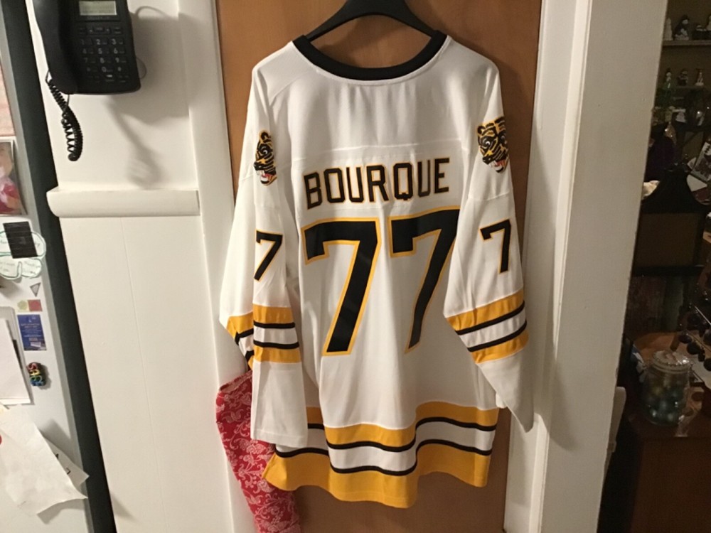 Show your love for the Boston Bruins with this officially licensed Mitchell & Ness jersey featuring Ray Bourque's number and name on the back. Made for men, this 4xlb jersey is perfect for any hockey fan who wants to show off their team spirit. The white jersey is adorned with the team's iconic blue line logo and is perfect for wearing to games or just around town. This jersey is a must-have for any Boston Bruins fan who wants to show their support for the team. The Mitchell & Ness brand ensures that this jersey is of high quality and will last for years to come. Don't miss out on the chance to own this piece of hockey history.