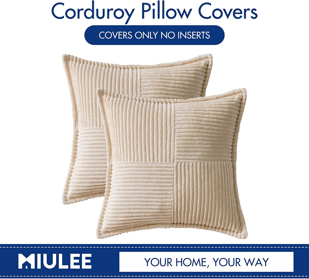 Store New Arrivals Add to Favorite View Feedback Contact MIULEE Corduroy Pillow Covers with Splicing Set of 2 Super Soft Boho Striped Description Item model number MIULEE Style Bohemian Number of Items 2 Pattern Striped Country of Origin China Theme Bohemian Brand MIULEE Number of Pieces 2 Unit Count 2.0 Count Room Type Office, Living Room, Bedroom Batteries required No Product Dimensions 18"L x 18"W Material Polyester Shape Square Volume 1 Cubic Inches Manufacturer MIULEE Closure Type Zipper Item Weight 1.08 pounds Occasion Christmas, Outdoors, Home Special Feature Durable Color Beige Pillow Type Throw Pillow Recommended Uses For Product Home Fabric Type 100% Polyester Product Care Instructions Machine Wash Size 18" x 18" (Pack of 2) 100% Polyester MATERIAL: Made of durable and soft corduroy fabric that gives you a comfortable touch. Irresistably comfortable to touch and lay on. Color may be different in different light or on different screen. UNIQUE DESIGN: Each pillow cover has delicate two-sides striped texture and the design of cross stitching in one side, fashionable and beautiful, which add a delicate and elegant touch to your room. GOOD DECORATION: These spring pillow covers can be matched with all home decor. Suitable for backyard, bed, sofa, couch, balcony, living room, bedroom, lounge, office, etc. Stylish and functional. INVISIBLE ZIPPER: The zipper is sewn on the back of the pillow covers for a beautiful look. Firm and smooth. Including two 18x18 inch(no include edge length) pillow covers, NO PILLOW INSERTS. WASHING TIPS: Machine Wash Cold Separately, Gently Cycle Only, Dot Not Bleach, Tumble Dry, Do Not Iron and it'll look brand new. Please allow 1-2cm deviation because of hand-cutting and sewing. Product Description The video showcases the product in use. The video guides you through product setup. The video compares multiple products. The video shows the product being unpacked. Christmas Beige Pillow Covers These pillow covers are perfect decorations. Suitable for backyard, bed, sofa, couch, balcony, living room, bedroom, lounge, office, cafe, etc. Stylish and functional. DIFFERENT SIZES Four sizes are avariable: square sizes 18"x18",16"x16",20"x20" and rectangle size 12"x20" Rectangular pillow is very suitable for padding at waist to relieve waist fatigue. UNIQUE DESIGN The design of cross stitching allows you to look at the pillowcase from different angles to get different surprises.Refresh your upholstery with the most unique design. MULTIPLE COLOR These light-coloured pillow covers such us bean green、pink and beige all match spring and summer seasons. Those pillow covers will make your home refreshed. BRIGHT COLOR MATCHING It can also be paired with some bright colors. When paired with orange pillow cover, it is very suitable for decorating your home in autumn. DARK COLOR COLLOCATION A variety of colors are available for your home decor ideas.These lovely hues will add a pop of color and modern detailing to your living space. BROADSIDE DESIGN Made of high quality corduroy with great texture. Makes you feel amazingly soft the moment your fingers touch. The design of broadside make the pillowcase more different. Refresh your upholstery with the most unique design. SPLICING PATTERN Delicate striped texture and single-sided cross stitching, fashionable and beautiful, which add a delicate and elegant touch to your room. The invisible zipper is sewn on the back of pillow cover for a beautiful look which allows easy insert and remove of pillow insert. ABOUT US We offer the best prices around on high quality products. Our E-store includes media such as books, movies, music and games while offering electronics, toys, sporting apparel, clothing, tools, general home, garden items and more. SHIPPING We are always working hard to ensure your package arrives as soon as possible. Please understand that some factors like weather, high postal traffic, and the performance of shipping companies are outside of our control. We offer free shipping to the lower 48 states and ship within 2 business days of payment, usually sooner. We do not accept P.O. Boxes. Please provide a physical address. RETURNS We offer a 30-Day Return Policy on items which you are not completely satisfied with. You have the option for a full-refund or an exchange of the item. No returns are available on items shipped outside of the USA. PAYMENT We accept PayPal. CONTACT US This page content is yet to come Please ad us to your favorite seller and visit again later Thank You CUSTOMER SATISFACTION We try our very best to make sure every customer is completely satisfied. If there's a problem, message us! We're happy to help.
