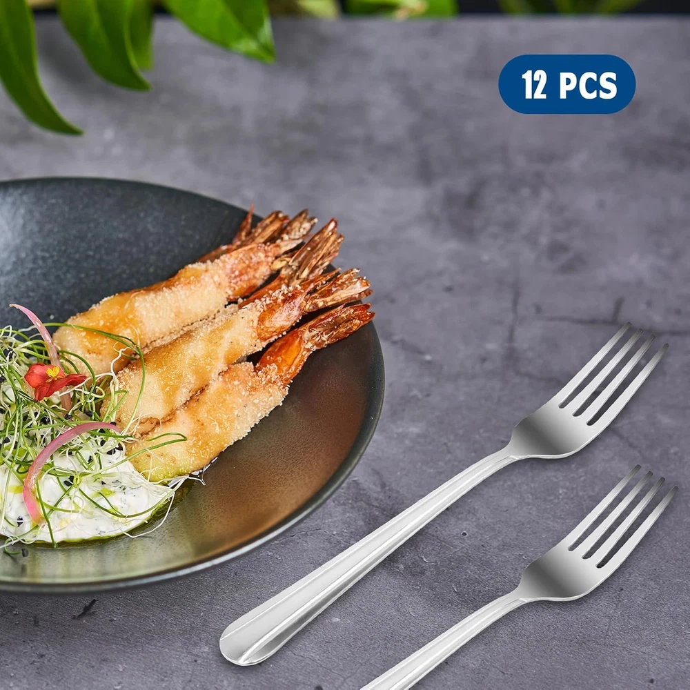 Store New Arrivals Add to Favorite View Feedback Contact MJIYA 12 PCS Dinner Forks Silverware Set - 7 Inch Heavy Duty Stainless Steel Description Brand Name MJIYA Color Nickel Brand MJIYA Material Stainless Steel Material Type Stainless Steel Handle Material Stainless Steel Finish Types Rust-resistant Is the item dishwasher safe? Yes Product Dimensions 7"L x 0.2"W Item Dimensions L x W 7"L x 0.2"W 【Material】: Our dinner forks are made of high-quality stainless steel, ensuring both their durability and your health. The rust-resistant, sturdy material will last for years to come. 【Healthy】: These metal silverware forks are non-toxic, nickel-free, and do not leave a metallic aftertaste. The smooth edges and appropriate weight ensure a comfortable and healthy dining experience. 【Elegant and Classy】: With a smooth surface and mirror polish that keeps them shining, our modern forks silverware will match well with your existing cutlery and elevate your everyday meals into a fine dining experience. Our flatware is expertly balanced to ensure that it does not feel too light or too heavy in your hand, providing the perfect amount of substance and weight for an enjoyable dining experience. 【Multipurpose】: Our set of 12 dinner forks is ideal for salads, steak, fish, pasta, chicken, pork, and any other foods you may enjoy. The size is suitable for your entire family, making it a must-have addition to your cutlery collection. Product Description MJIYA Dinner Forks Silverware Set Upgrade your home dining experience with MJIYA's 12-piece set of heavy-duty, stainless steel dinner forks. Made with high-quality, rust-resistant material, these forks will stand the test of time while also ensuring your health with their non-toxic, nickel-free construction. The smooth edges and optimal weight provide a comfortable dining experience while matching well with existing cutlery for a refined look. Dominion Heavy Duty Forks Easy to clean, can be washed in the dishwasher normally High-quality stainless steel with rust-resistant and non-toxic properties Elegant and modern design with smooth surface and mirror polish ABOUT US We offer the best prices around on high quality products. Our E-store includes media such as books, movies, music and games while offering electronics, toys, sporting apparel, clothing, tools, general home, garden items and more. SHIPPING We are always working hard to ensure your package arrives as soon as possible. Please understand that some factors like weather, high postal traffic, and the performance of shipping companies are outside of our control. We offer free shipping to the lower 48 states and ship within 2 business days of payment, usually sooner. We do not accept P.O. Boxes. Please provide a physical address. RETURNS We offer a 30-Day Return Policy on items which you are not completely satisfied with. You have the option for a full-refund or an exchange of the item. No returns are available on items shipped outside of the USA. PAYMENT We accept PayPal. CONTACT US This page content is yet to come Please ad us to your favorite seller and visit again later Thank You CUSTOMER SATISFACTION We try our very best to make sure every customer is completely satisfied. If there's a problem, message us! We're happy to help.