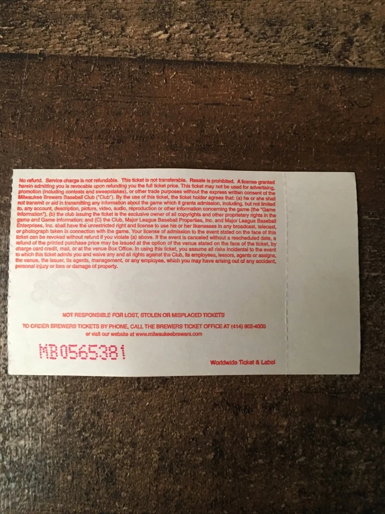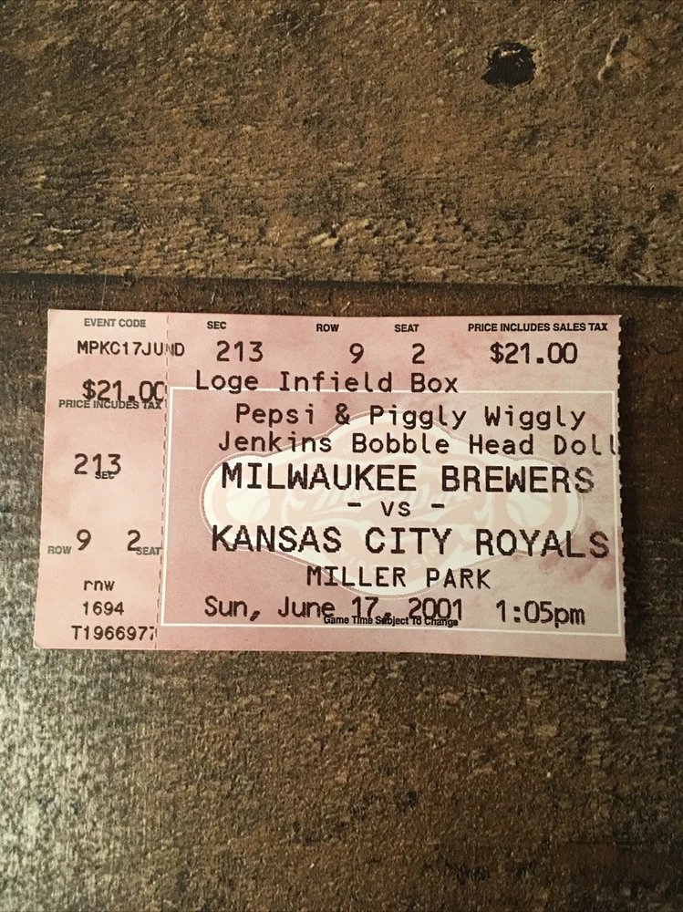 Team-Baseball:Milwaukee BrewersTeam-NFL:NAGrade:UngradedVintage:YesTeam:Milwaukee Brewers vs Kansas City RoyalsTeam-Hockey:NAModified Item:NoOriginal/Reproduction:OriginalYear:2001Team-Basketball:NAUPC:Does not applySport:Baseballgtin13:Does not applyCountry/Region of Manufacture:United StatesPlayer:Geoff Jenkins
