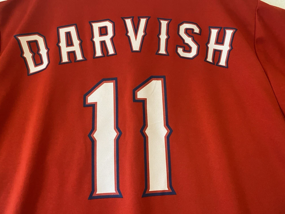 MLB Texas Rangers Men's XL Jersey Yu Darvish Red Button Up Stadium Giveaway Pre-Owned in very good condition. No garment/size tag but based on similar comps with similar chest measurements this would be an XL. See photos or best representation & for measurements. Thank you for looking and supporting my small business!
