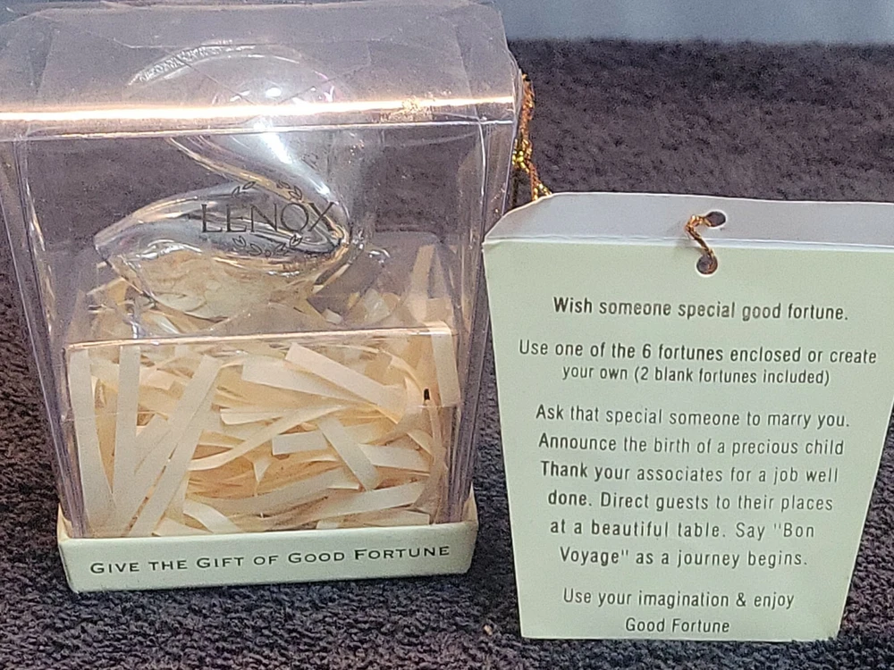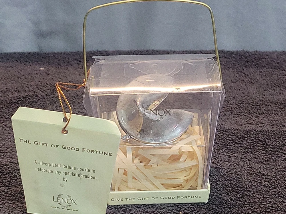 M-Lenox Silver Plated Fortune Cookie Good Luck New Year Wedding Birthday Gift. This could be a cool find and would be a great addition to any collection or just to enjoy. Thank you for shopping with me. My goal is to provide accurate descriptions and satisfaction with every purchase! Please email me with any questions and I will answer as promptly as I can. I appreciate an email if you feel the listing was not accurate and are disappointed. I want to resolve any and all issues as quickly as possible. I have listed a method I think appropriate for the item. Make sure to check out my other listings on similar items. I have taken several photos as they are the best description that I can offer as far as its condition goes. Please use the zoom and feature to see the fine detail of this item. Make sure to check out my other listings on similar items. Thank you very much for looking, have a great day.