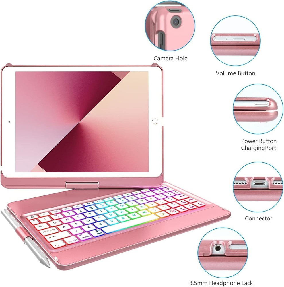 MMK Keyboard Case Compatible with iPad 10.2 inch 9th Gen 2021,for Rose Gold Product Details Product Dimensions: 9.84 x 7.68 x 0.79 inches Item Weight: 1.71 pounds Manufacturer: MMK Language: English Item model number: compatible with 10.2" 9/8/7th Gen Batteries: 1 Lithium Polymer batteries required. (included) Is Discontinued By Manufacturer: No Brand: MMK Compatible Devices: compatible with 8th Gen 2020 (A2270/A2428/A2429) Connectivity Technology: Bluetooth Keyboard Description: English Keyboard Recommended Uses For Product: Office,Home,Class,Working,Study,Game Special Feature: Backlit Color: Rose Gold Number of Keys: 78 Keyboard backlighting color support: RGB Style: Classic 【7 Colors Backlit Keyboard】 Our keyboard's backlight is engineered for optimal light diffusion in any setting,7 color backlit with 3 brightness mode bring you different visual enjoyment and comfortable typing experience. Multiple colors give you the freedom to choose what you like.Even in dark environment, you could have no hassle to work or use your iPad. MMK Keyboard Case Compatible With iPad 9th Generation