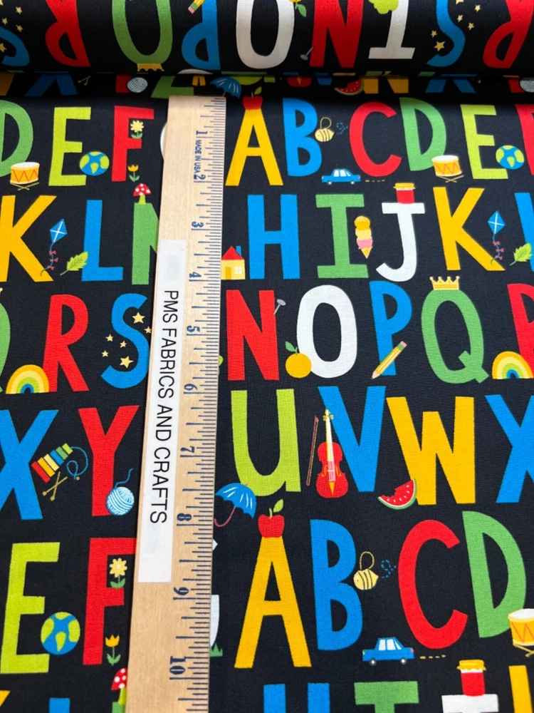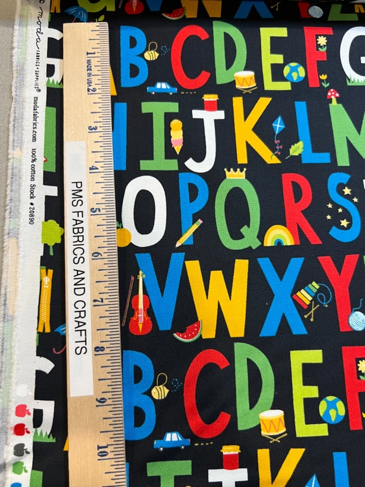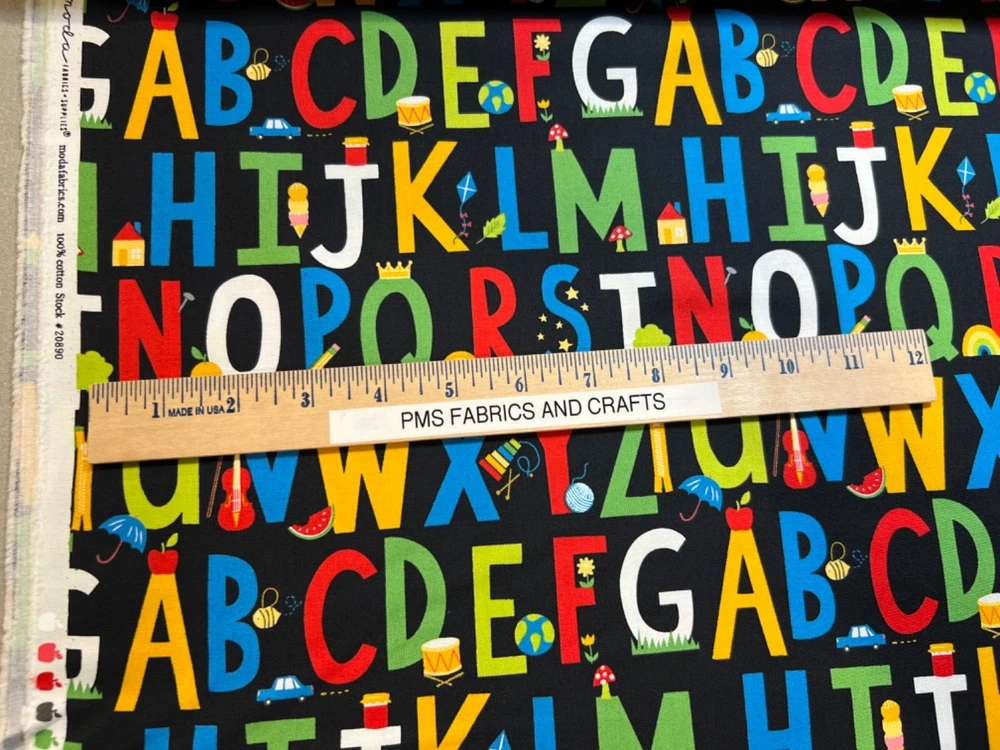 MODA 100% cotton fabric - very modern print - Sold by the YARD - each yard measures approximately 36 inches X 44 inches . Wonderful fabric collection called Back to School by Stacy lst HSU for MODA. The color on this print is called BLACKBOARD - a blackish tone background. The ABC's & the most common examples of them are printed on this fun print. Example A shows a little apple, C shows a car, T shows a tree, etc. Please review all pictures to see a ruler to show the approximate measurements. The ruler shown in some pictures is not included in the price. Review the picture with the selvage edge as well. These images and ABC's are printed from selvage edge to selvage edge. You will have some partial images at the cut lines. Reminder some computers or mobile devices may NOT show accurate colors. To see the other fabrics in this collection, search our store with the word SCHOOL. Uncut until ready to ship - whenever possible multiple yards should be mailed as 1 section BUT if this is important to you, please ask PRIOR to purchase to make sure that we have the amount that you need as 1 section. Would make great hot pads, reading pillows, table runners, mug rugs, quilt blocks & more! NEW unwashed 100% Cotton - in smoke free, vapor free & pet free home! Shipping is to USA only - please review the shipping tab for current shipping rates. PLEASE DO NOT pay for the items individually - WAIT to pay for all items together to save you time & money! When wanting to purchase 4 or more items (same item or can be a mixture of items from our store), please request a special listing! Just message me the item numbers that you want, the qty of each, your mailing zip code & then I can create you a special listing here on ebay with the correct shipping rate! This will save you money on shipping! As per Ebay customer support, Ebay programming will not allow a customer to request the invoice total since we offer discounts on our items, so in order to get the best rate shipping we must create a special item here on Ebay after you send us the item numbers, qty of each, & your mailing zip code. Once payment is received & clears Ebay & please make sure that the USA mailing address is correct on the payment, we will ship US Postal Service or for larger orders, we also use UPS for the best rate shipping. NOTE that the shipping is only good for the initial mailing. If the address is incorrect on your payment & the package is returned to us, you will be charged shipping again so that we can remail - this is why it is IMPORTANT that you make sure that your shipping address is correct on your payment! If your order had free shipping, then you will be charged a 2nd shipping fee as well - again this is why it is important to review your payment BEFORE you complete it. Please note that orders paid by Echecks will NOT be shipped until Ebay & your bank clears your payment which normally takes 3-5 business days. The time period for clearing TOTALLY depends on your bank & EBay but once the clearing is sent by Ebay, we will be able to mail the package. NOTE that the date on EBay is an ESTIMATED delivery date AFTER the payment clears Ebay. This is ONLY an estimate so please do not expect the package to arrive exactly on this date since once we mail the package we cannot control the time that it takes for USPS to deliver the package. Please be FAIR on your feedback since once we mail the package (you will get a tracking number & a message notice showing we mailed the package & the date) we cannot control the actual delivery date. Return policy - In order to comply with Ebay power seller guidelines, we are forced to accept returns for Ebay BUT please understand that any item that has been washed, cut or around smoke, vapor or pets will not get a full refund once the return is received at our location. This is due to the fact that we sell new - unwashed - smoke free - pet free items & once it is altered, washed or around smoke or pets, it is no longer sellable. Shipping for the original package is non-refundable - if your item had free shipping, the actual cost of shipping your order will be deducted from any refund. NOTE that any return on special listings or custom orders will be charged a 10% return fee! Please note that we include a packing slip with EVERY order that includes the order details like item, qty, our Ebay shop name and contact information. This helps prevent lost packages by the carrier in case where the label is removed from the outside of the package. Thanks for shopping pmscrafts74 – we appreciate your business & look forward to hearing from you!