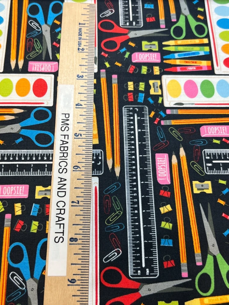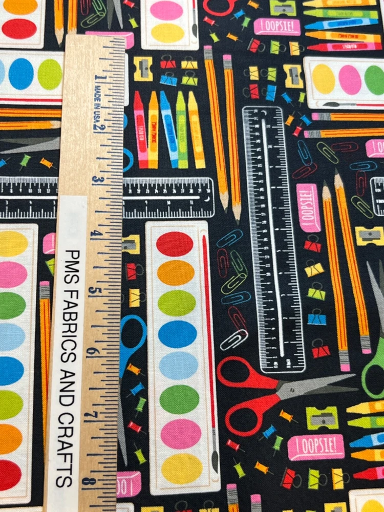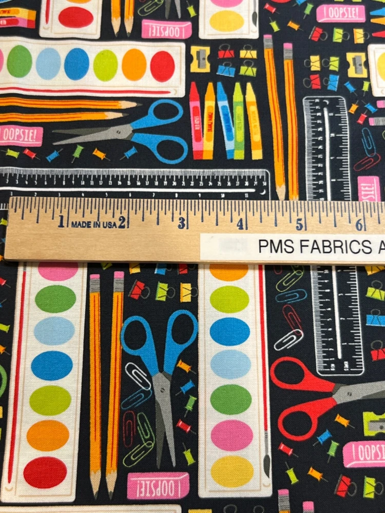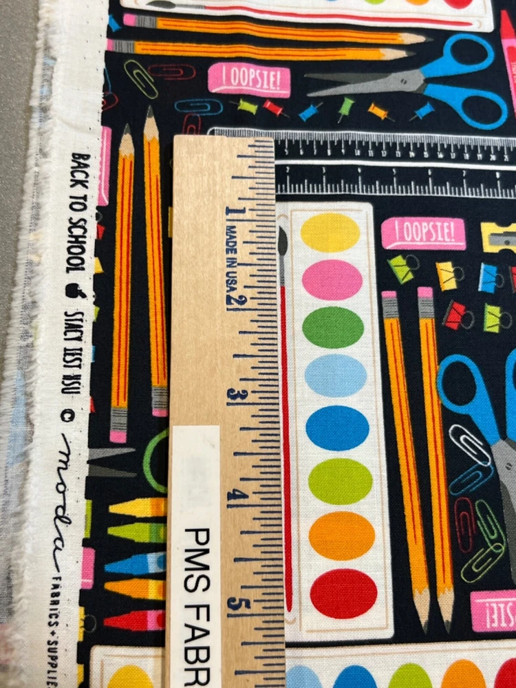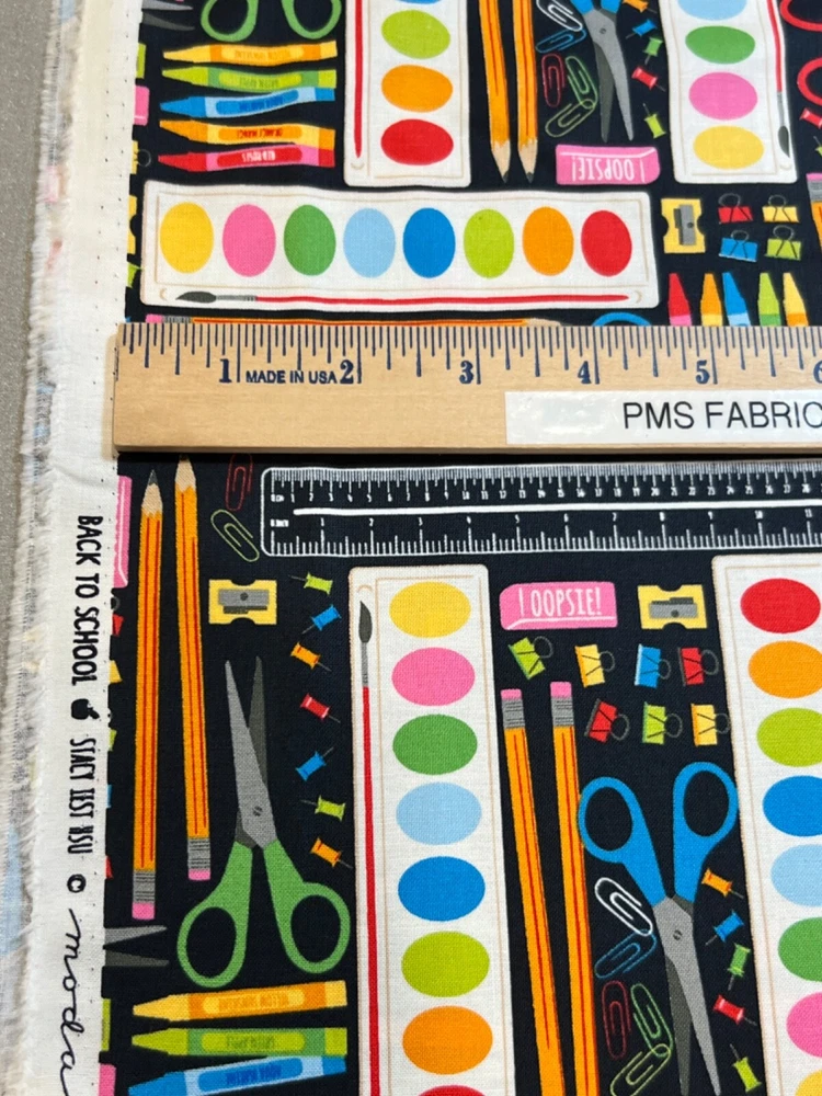 MODA 100% cotton fabric - very modern print - Sold by the YARD - each yard measures approximately 36 inches X 44 inches . Wonderful fabric collection called Back to School by Stacy lst HSU for MODA. The color on this print is called BLACKBOARD - a blackish tone background. The images of art supplies are tossed but kind of organized all over this fabric. Please review all pictures to see a ruler to show the approximate measurements. The ruler shown in some pictures is not included in the price. Review the picture with the selvage edge as well. Reminder some computers or mobile devices may NOT show accurate colors. To see the other fabrics in this collection, search our store with the word SCHOOL. Uncut until ready to ship - whenever possible multiple yards should be mailed as 1 section BUT if this is important to you, please ask PRIOR to purchase to make sure that we have the amount that you need as 1 section. Would make great hot pads, reading pillows, table runners, mug rugs, quilt blocks & more! NEW unwashed 100% Cotton - in smoke free, vapor free & pet free home! Shipping is to USA only - please review the shipping tab for current shipping rates. PLEASE DO NOT pay for the items individually - WAIT to pay for all items together to save you time & money! When wanting to purchase 4 or more items (same item or can be a mixture of items from our store), please request a special listing! Just message me the item numbers that you want, the qty of each, your mailing zip code & then I can create you a special listing here on ebay with the correct shipping rate! This will save you money on shipping! As per Ebay customer support, Ebay programming will not allow a customer to request the invoice total since we offer discounts on our items, so in order to get the best rate shipping we must create a special item here on Ebay after you send us the item numbers, qty of each, & your mailing zip code. Once payment is received & clears Ebay & please make sure that the USA mailing address is correct on the payment, we will ship US Postal Service or for larger orders, we also use UPS for the best rate shipping. NOTE that the shipping is only good for the initial mailing. If the address is incorrect on your payment & the package is returned to us, you will be charged shipping again so that we can remail - this is why it is IMPORTANT that you make sure that your shipping address is correct on your payment! If your order had free shipping, then you will be charged a 2nd shipping fee as well - again this is why it is important to review your payment BEFORE you complete it. Please note that orders paid by Echecks will NOT be shipped until Ebay & your bank clears your payment which normally takes 3-5 business days. The time period for clearing TOTALLY depends on your bank & EBay but once the clearing is sent by Ebay, we will be able to mail the package. NOTE that the date on EBay is an ESTIMATED delivery date AFTER the payment clears Ebay. This is ONLY an estimate so please do not expect the package to arrive exactly on this date since once we mail the package we cannot control the time that it takes for USPS to deliver the package. Please be FAIR on your feedback since once we mail the package (you will get a tracking number & a message notice showing we mailed the package & the date) we cannot control the actual delivery date. Return policy - In order to comply with Ebay power seller guidelines, we are forced to accept returns for Ebay BUT please understand that any item that has been washed, cut or around smoke, vapor or pets will not get a full refund once the return is received at our location. This is due to the fact that we sell new - unwashed - smoke free - pet free items & once it is altered, washed or around smoke or pets, it is no longer sellable. Shipping for the original package is non-refundable - if your item had free shipping, the actual cost of shipping your order will be deducted from any refund. NOTE that any return on special listings or custom orders will be charged a 10% return fee! Please note that we include a packing slip with EVERY order that includes the order details like item, qty, our Ebay shop name and contact information. This helps prevent lost packages by the carrier in case where the label is removed from the outside of the package. Thanks for shopping pmscrafts74 – we appreciate your business & look forward to hearing from you!