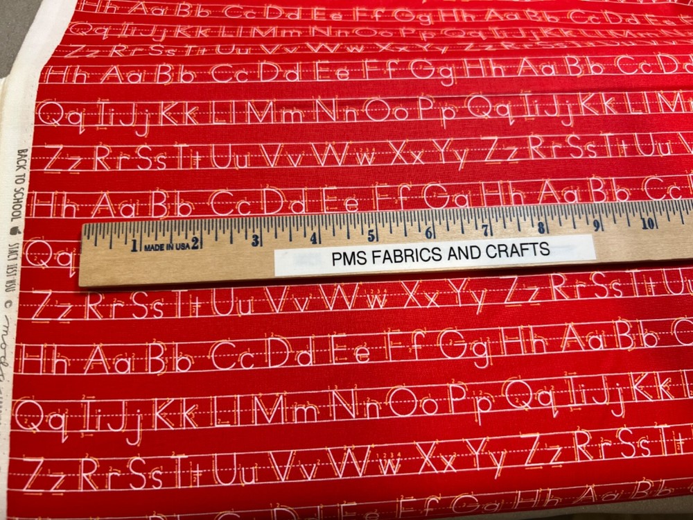 MODA 100% cotton fabric - very modern print - Sold by the YARD - each yard measures approximately 36 inches X 44 inches . Wonderful fabric collection called Back to School by Stacy lst HSU for MODA. The color on this print is called APPLE - nice apple red tone background. The images of ABC's on writing lines may not be lined up perfectly and you will have partial images at the cut edges. Please review all pictures to see a ruler to show the approximate measurements. The ruler shown in some pictures is not included in the price. Review the picture with the selvage edge as well. Images are printed selvage edge to selvage edge. Reminder some computers or mobile devices may NOT show accurate colors. To see the other fabrics in this collection, search our store with the word SCHOOL. Uncut until ready to ship - whenever possible multiple yards should be mailed as 1 section BUT if this is important to you, please ask PRIOR to purchase to make sure that we have the amount that you need as 1 section. Would make great hot pads, reading pillows, table runners, mug rugs, quilt blocks & more! NEW unwashed 100% Cotton - in smoke free, vapor free & pet free home! Shipping is to USA only - please review the shipping tab for current shipping rates. PLEASE DO NOT pay for the items individually - WAIT to pay for all items together to save you time & money! When wanting to purchase 4 or more items (same item or can be a mixture of items from our store), please request a special listing! Just message me the item numbers that you want, the qty of each, your mailing zip code & then I can create you a special listing here on ebay with the correct shipping rate! This will save you money on shipping! As per Ebay customer support, Ebay programming will not allow a customer to request the invoice total since we offer discounts on our items, so in order to get the best rate shipping we must create a special item here on Ebay after you send us the item numbers, qty of each, & your mailing zip code. Once payment is received & clears Ebay & please make sure that the USA mailing address is correct on the payment, we will ship US Postal Service or for larger orders, we also use UPS for the best rate shipping. NOTE that the shipping is only good for the initial mailing. If the address is incorrect on your payment & the package is returned to us, you will be charged shipping again so that we can remail - this is why it is IMPORTANT that you make sure that your shipping address is correct on your payment! If your order had free shipping, then you will be charged a 2nd shipping fee as well - again this is why it is important to review your payment BEFORE you complete it. Please note that orders paid by Echecks will NOT be shipped until Ebay & your bank clears your payment which normally takes 3-5 business days. The time period for clearing TOTALLY depends on your bank & EBay but once the clearing is sent by Ebay, we will be able to mail the package. NOTE that the date on EBay is an ESTIMATED delivery date AFTER the payment clears Ebay. This is ONLY an estimate so please do not expect the package to arrive exactly on this date since once we mail the package we cannot control the time that it takes for USPS to deliver the package. Please be FAIR on your feedback since once we mail the package (you will get a tracking number & a message notice showing we mailed the package & the date) we cannot control the actual delivery date. Return policy - In order to comply with Ebay power seller guidelines, we are forced to accept returns for Ebay BUT please understand that any item that has been washed, cut or around smoke, vapor or pets will not get a full refund once the return is received at our location. This is due to the fact that we sell new - unwashed - smoke free - pet free items & once it is altered, washed or around smoke or pets, it is no longer sellable. Shipping for the original package is non-refundable - if your item had free shipping, the actual cost of shipping your order will be deducted from any refund. NOTE that any return on special listings or custom orders will be charged a 10% return fee! Please note that we include a packing slip with EVERY order that includes the order details like item, qty, our Ebay shop name and contact information. This helps prevent lost packages by the carrier in case where the label is removed from the outside of the package. Thanks for shopping pmscrafts74 – we appreciate your business & look forward to hearing from you!