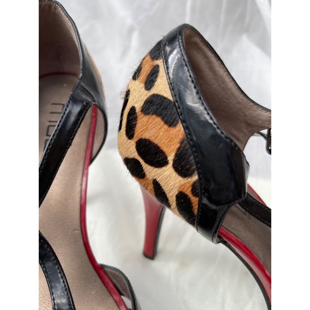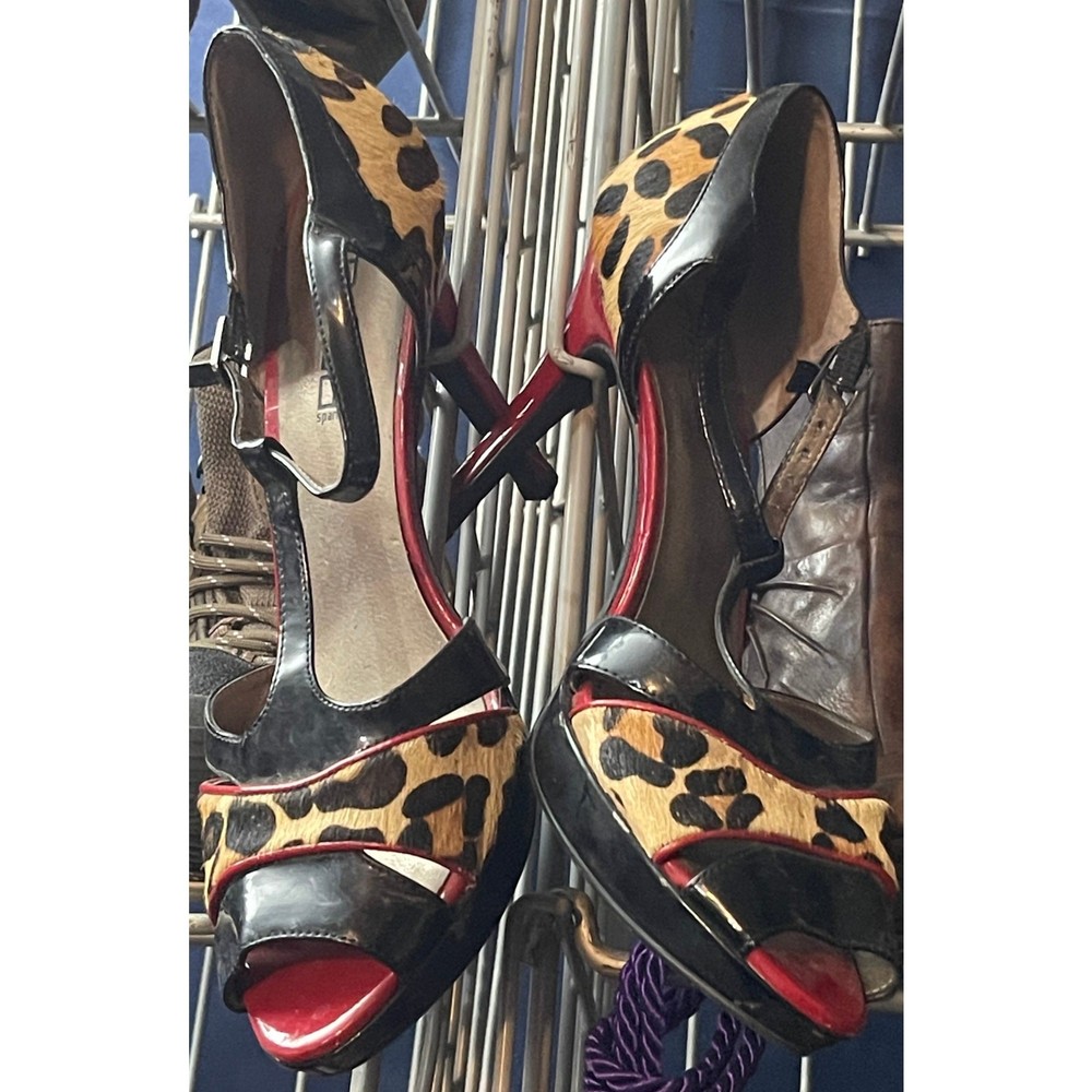Turn heads with these fierce MODA SPANA high heels! These stunning leopard-print peep-toe heels combine sleek black patent leather with striking animal-print accents for a sultry, statement-making look. Featuring a red sole and trim, these shoes add a touch of glamour and edge to any outfit. PRODUCT DETAILS: ✔ Brand: MODA SPANA ✔ Size: 10M ✔ Style: Peep toe high heels ✔ Color: Black patent leather with leopard-print pony hair and red trim ✔ Condition: Good used condition – minor wear and tear (see photos) ✔ Features: Adjustable ankle strap, stiletto heel, red sole Perfect for: * Date nights & special occasions * Vintage & retro-inspired fashion lovers * Adding a pop of animal print to your wardrobe