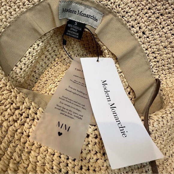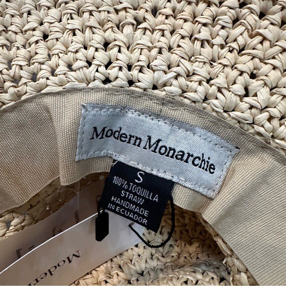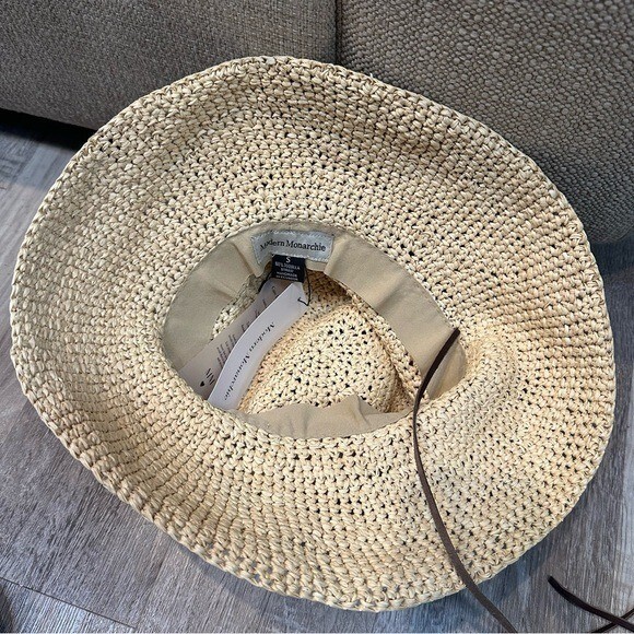 MODERN MONARCHIE Hat Small Toquilla Straw Handmade Sun Beach Broad Rim Neutral Only has 1 chin strap Brand new with tag 7