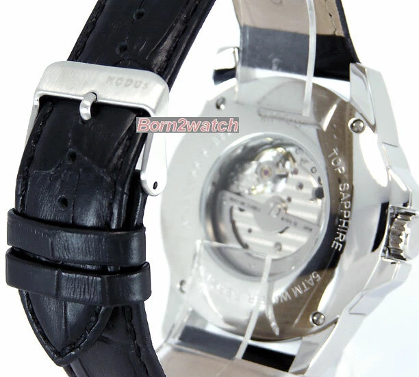 WE DO NOT SELL REPLICAS! 100% BRAND NEW AND AUTHENTIC! *SELLER RETIRING*SUPER CLEARANCE* MEN MODUS GA439.1015.21A AUTOMATIC MIYOTA JAPAN MOVEMENT 21 JEWELS PARTIAL SKELETON SILVER PATTERNED DIAL WITH BLUE ACCENTS LUMINESCENT HANDS SOLID STAINLESS STEEL CASE AND BUCKLE IN POLISHED/BRUSHED FINISH SAPPHIRE CRYSTAL GENUINE BLACK LEATHER STRAP STEEL BACK COVER WITH OBSERVATION CRYSTAL 50m WATER RESISTANT CASE DIAMETER IS 45mm EXCLUDING CROWN CASE IS 14mm HIGH LUG SIZE IS 22mm (WHERE STRAP CONNECTS TO CASE) WEIGHS 4.1oz (114g) MAXIMUM WRIST SIZE 8-1/2" COMES IN PRESENTATION BOX RETAIL $295