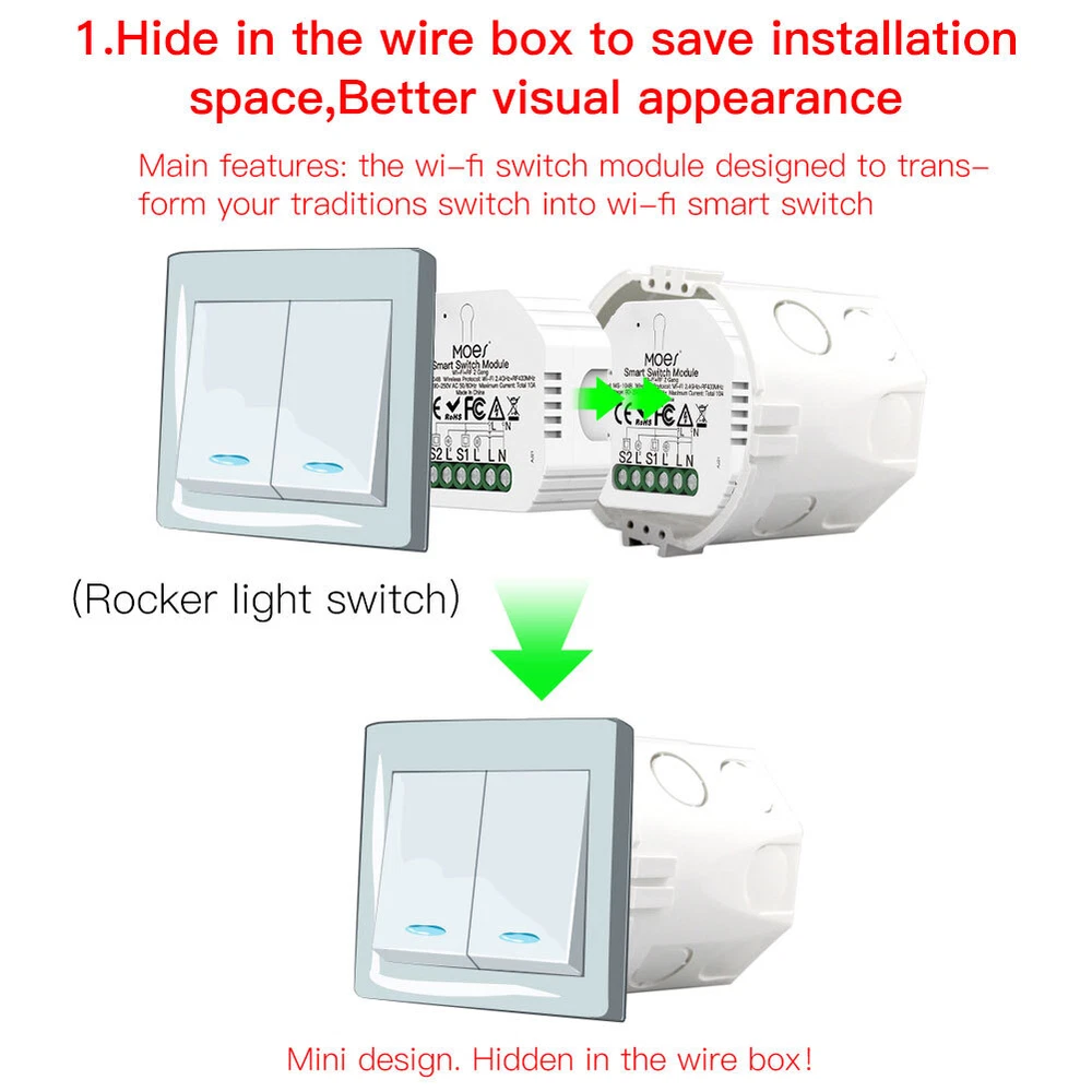 MOES WLAN RF433 Smart Lichtschalter Unterputz Relais Modul Alexa Google Tuya App 【 Arbeitet mit Original-Schalter 】 Dieses intelligente WLAN-Modul mit Mini-Design eignet sich für die EU/UK-Wandschaltbox und versteckt es einfach in Ihrer versteckten Wandschaltbox Ihres traditionellen Schalters, ohne Ihren ursprünglichen Dekorationsstil zu beeinflussen, Noch wichtiger ist, dass Ihr herkömmlicher Schalter und dieses Smart-Modul unabhängig voneinander im nicht störenden Modus arbeiten können.Kann nicht nur Ihr Licht/Gerät intelligent machen, es ermöglicht Ihnen auch, Ihre ursprüngliche Schalter-Handsteuerung zu behalten. 【 1/2 Weg 】 Erzielen Sie eine Mehrfachsteuerung durch die Zuordnung zu anderen Smart Switches in der Smart Life App, neben einem eigenen Modul, das als 1/2-Wege-Schaltung verwendet wird (2 Schalter steuern 1 Licht). Unterstützt RF433-Fernbedienung (Code 1527 verwenden) 【 App-Steuerung und Sprachsteuerung 】 Steuerung mit Ihrem Smartphone über die Smart Life/Tuya-App ohne separaten Hub. kompatibel mit Alexa und Google Home; Fernsteuerung von Geräten mit Ihrem Smartphone, auch wenn Sie nicht zu Hause sind; Speicherfunktion zum Ausschalten verfügbar. 【 Timing-Funktion 】 Übernehmen Sie mit der App die volle Kontrolle über angeschlossene Geräte mit Timern, Zeitplänen und Countdowns (1/5/30 Minuten, 1 Stunde usw.); Teilen Sie die Kontrolle mit Familie und Freunden für zusätzlichen Komfort. 【 Achtung 】 In Ihren Schaltkästen ist ein Neutralleiter erforderlich , um korrekt zu funktionieren; unterstützt nur 2,4-GHz-Netzwerke;Bei Fragen können Sie sich gerne an uns wenden. Paketliste : 1* MOES Wlan+RF Smart Lichtschalter Modul 1* Benutzerhandbuch Zahlung Versand Rückgaben Bewertungen Kontaktiere uns Zahlung Wir akzeptieren nur von eBay angeforderte Zahlungsmethoden. Sie können sofort nach Auktionsende oder nach Abschluss der Einkäufe zur Kasse gehen und bezahlen. Wenn Sie Probleme mit der Zahlung haben, kontaktieren Sie uns bitte per eBay-Nachricht. Versand 1.Bitte erlauben Sie bis zu 48 Stunden für die Versandvereinbarung nach bestätigter Zahlung. Wir versenden Artikel nur an die eBay-Adresse. Wir haften nicht für Verluste aufgrund falscher oder unzustellbarer Lieferadressen. 2 .Der Versand dauert in der Regel 2-5 Werktage (EU-Warenlager) oder 8-15 Werktage (Lager außerhalb der EU), Samstag und Sonntag ausgeschlossen. Wenn Sie den Artikel dringend benötigen, kontaktieren Sie uns bitte vor dem Kauf für Einzelheiten. 3.Wir bieten keinen Abholservice im Geschäft an, ich hoffe, Sie können das verstehen. Rückgaben 1.Wenn Sie mit unseren Produkten nicht zufrieden sind. Bitte kontaktieren Sie uns, bevor Sie die Rücksendeanfrage öffnen. Wir bieten eine 30-tägige Geld-zurück- oder Umtauschgarantie. 2.Bitte kontaktieren Sie uns für die RMA-Nr. und Adresse, bevor Sie den Artikel zurücksenden. Bewertungen 1. Bitte kontaktieren Sie uns, bevor Sie ein neutrales oder negatives Bewertungen hinterlassen. Wir würden unser Bestes versuchen, um Ihnen bei der Lösung des Problems zu helfen. Bitte erlauben Sie uns, Ihre E-Mail innerhalb von 24 Stunden zu beantworten. 2 . Wir werden den Service so gut wie möglich erbringen🥰, denn das Bewertungen und ist das, wonach wir streben. Bitte senden Sie mir eine E-Mail über "Meine Nachrichten" oder "Verkäufer kontaktieren", wenn Sie Fragen zu unseren Angeboten oder Ihrem Kauf haben. Kontaktiere uns 1. Bitte kontaktieren Sie uns, wenn Sie mit dem Artikel nicht zufrieden sind, nachdem Sie ihn erhalten haben. Kontaktieren Sie uns einfach über den Link "Dem Verkäufer eine Frage stellen " auf eBay. 2. Alle Antworten werden an Ihre E-Mail-Adresse gesendet. Wenn Sie innerhalb von 1-2 Werktagen keine Antwort erhalten, überprüfen Sie bitte Ihre "Meine Nachrichten" , falls Ihr E-Mail-Anbieter einen übermäßig aggressiven Spam-Filter hat, der E-Mails von eBay blockiert. Bitte senden Sie uns WIEDER eine E-Mail. Danke!