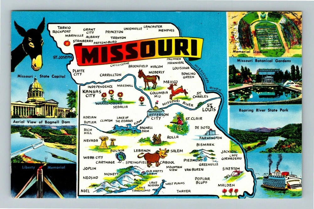 MO-Missouri, Aerial View Map, Landmarks, Vintage Postcard