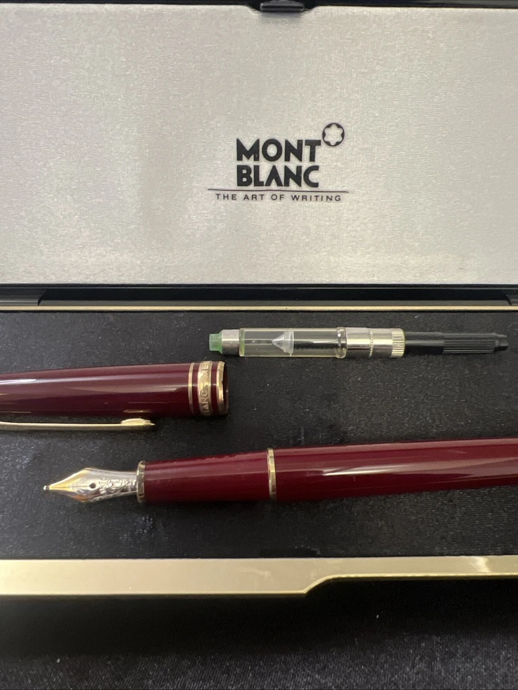The Montblanc Meisterstuck Fountain Pen 144 in Bordeaux Resin features an Extra Fine (EF) 14K gold nib, making it an exquisite writing instrument. Crafted in Japan, this fountain pen is designed with a luxurious red ink color and a sleek resin material. The pen comes in a gift box, adding to its elegance and making it a perfect choice for pen enthusiasts or as a special gift.