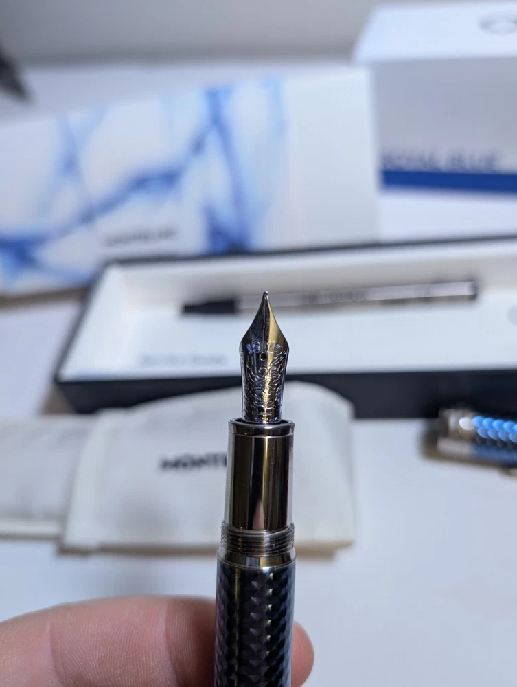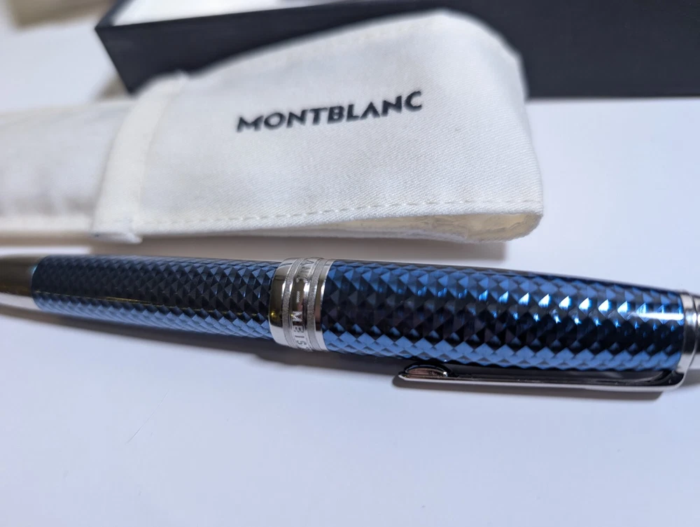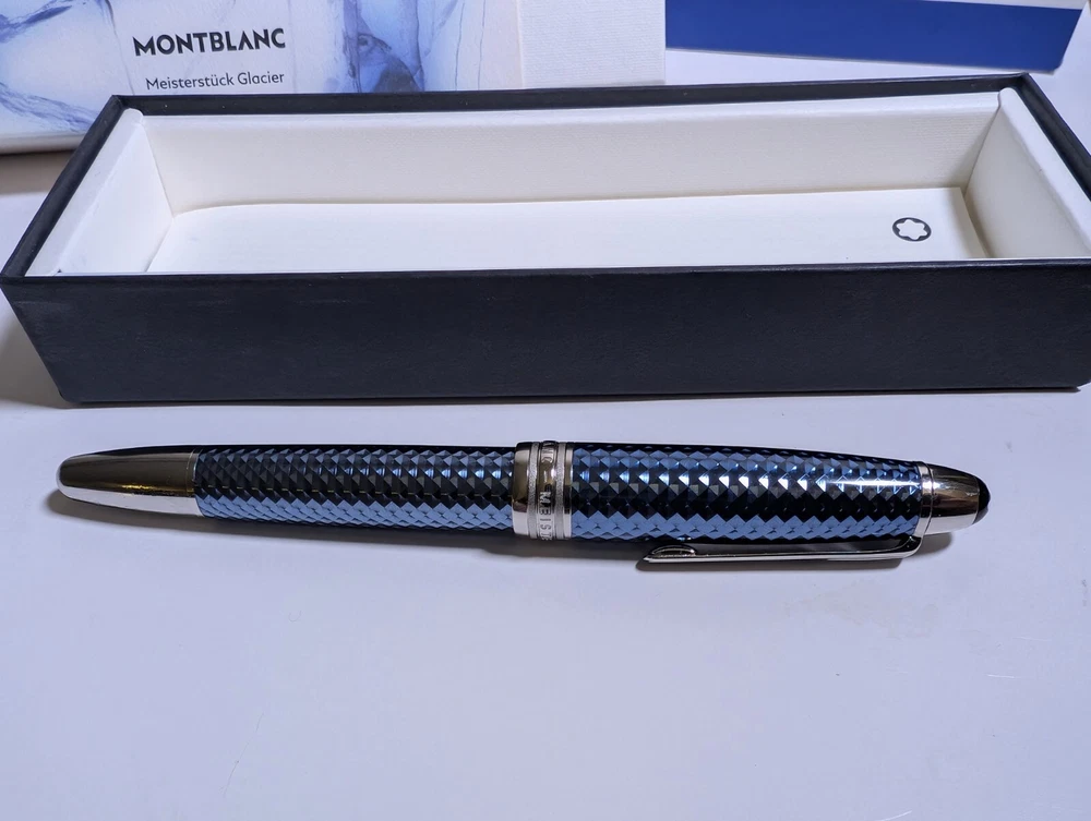 Experience the luxury of writing with the MONTBLANC Translucent Blue Lacquer Meisterstück Glacier Rollerball Pen, a testament to Montblanc's commitment to quality and elegance. The pen's sleek design is complemented by its smooth, glacier blue finish, making it a stylish addition to any collection or a sophisticated gift for a discerning writer. Crafted for those who appreciate fine craftsmanship, this fountain pen offers a comfortable writing experience with its precision-engineered nib. The rollerball pen is perfect for both everyday use and special occasions, seamlessly blending functionality with the panache expected from a brand synonymous with excellence.