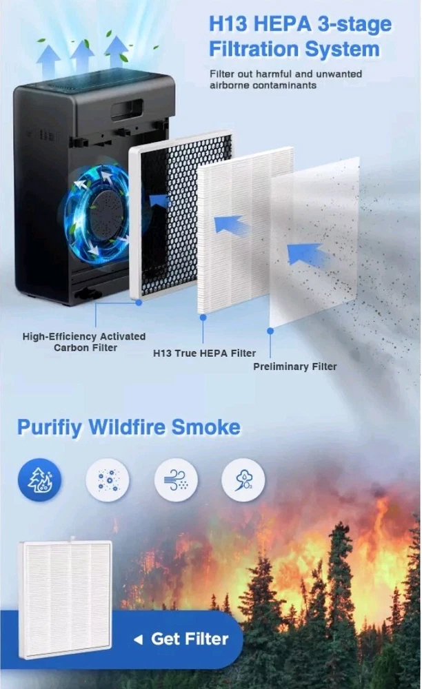 MOOKA Air Purifiers for Large Room Up To 1740ft² H13 True HEPA Filter Air Clean