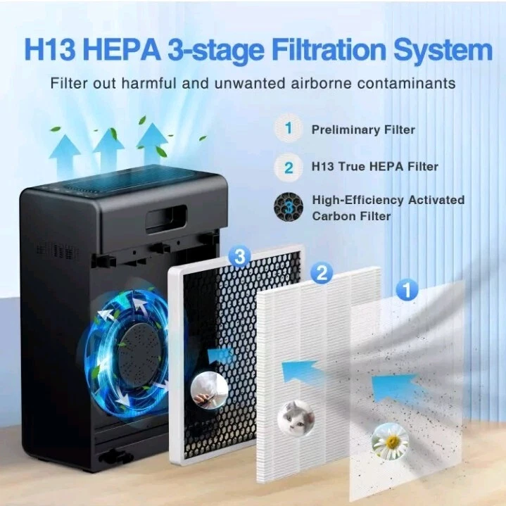 New MOOKA Air Purifiers for Home Large Room Up To 1740ft² H13 True HEPA Filter Air Clean Model E 300L color Black. For Pets Hair Dander Smoke Pollen Dust, Non-Ozone, Portable Air Purifiers for Bedroom Office Living Room, E-300L color Black. Open Box