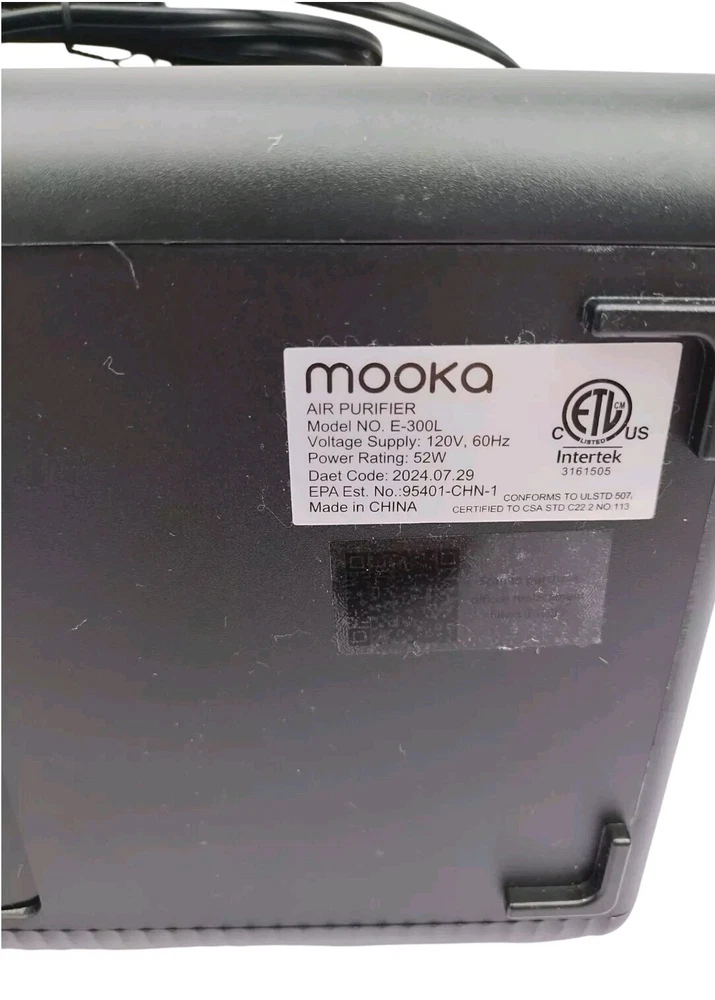 Power Source: Electrical, Electric gtin13: Does not apply UPC: Does not apply Filtration Technology: Activated Carbon, Ionizer, Pre-Filter, True HEPA Voltage: AC 120V 60HZ Item Width: 2.76 inches Sensor Technology: Filter Life Monitor, Odor Sensor Item Height: 16.14 inches Item Depth: 11.6 inches Manufacturer Warranty: 3 Years Mounting: Dashboard, Doorway, Floor Item Weight: 8.27 Pounds Coverage: 3000 Square Feet Brand: MOOKA Contaminants Captured: Allergens, Bacteria, Cough & Sneeze Debris, Debris, Dust, Dust Mites, Exhaust Pollution, Gases & Fumes, Odors, Pet Dander, PM 1.0, PM 2.5, Pollen, Tobacco Smoke, Transportation Pollution, Virus Carriers, Viruses, Volatile Organic Compounds (VOCs) Type: Plug-In MPN: HAAP1153 Application: Personal, Whole House, Whole Room, Office, Home Color: Black Country/Region of Manufacture: China Model: E-300L Features: Fan Function, Portable, Quiet Operation Material: Metal, Plastic Finish: Glossy Room: Any Room, Bedroom, Conservatory, Dining Room, Garage, Guestroom, Home Office/Study, Kid's Bedroom, Kid's Playroom, Kitchen, Living Room, Teen's Bedroom, Utility/Laundry Room Filter Life: 6 Months