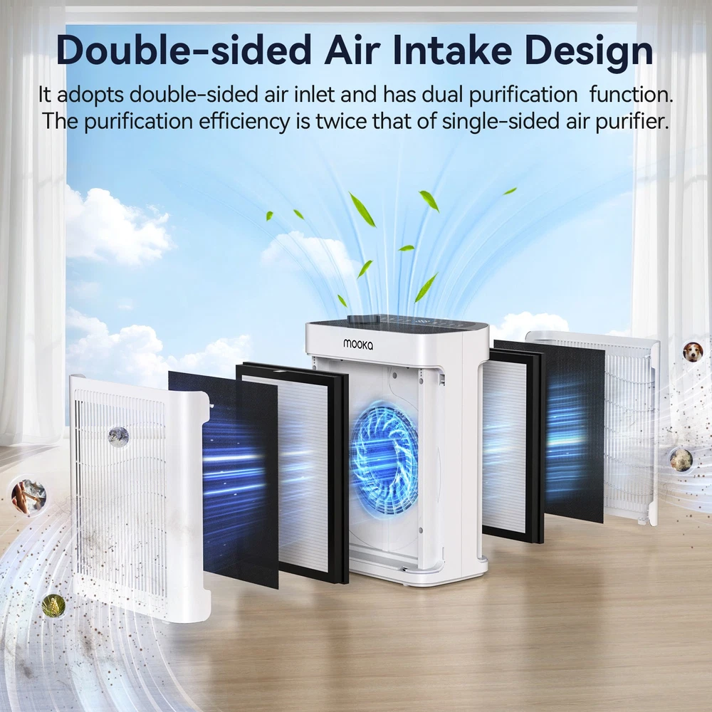 About this item Cleans Large Spaces Efficiently (2200 sq.ft) Designed for rooms up to 2200 square feet, this powerful air purifier delivers a CADR (Clean Air Delivery Rate) of 400m³/h, ensuring quick and thorough air purification in large areas like living rooms, offices, and open-plan spaces. Advanced Double-Sided Air Intake Design With a unique double-sided air intake system, this air purifier maximizes airflow and filtration efficiency, ensuring consistent and fast purification across larger rooms, creating a healthier and more comfortable living environment. Quiet Operation with Sleep Mode Enjoy peaceful, undisturbed sleep thanks to the ultra-quiet operation (as low as 28dB) and the dedicated Sleep Mode. The purifier runs silently at night, providing clean air without disrupting your rest. Return Shipping Feedback Payment Contact US Return 1. Accept Return in 60 days for refund or replacement, goods in resalable condition 2. Contact for address and reference number before return(note: unannounced parcel may be returned to wrong address, seller will not be responsible for this). 3. No factory warranty for the man-made damage. 4.Please note that all returns must be pre-approved by us. Unauthorized returns will not be accepted. If you need to return, please check twice to confirm the item not work and contact our customer service representative, let us know the detailed problem and send us some pictures for confirmation. 5.We ONLY accept returns with original package. Shipping 1. Fast shipping by USA LOCAL FAST SHIPPING . Mostly, all of the products will be shipped out within 1 working day after and about 1-7working days to delivery 2. we received the payment and your contact phone number. 3. Please be aware that PO Box cannot receive items,please DO NOT fill in the PO Box address. Feedback 1. Please leave five stars positive feedback positive comment and Five-Stars. And a potive feedback you will receive after yours. 2. Contact us if you have any question, Give us a chance to serve you, negative feedback could not solve anything. 3. Communication First Please! Payment We accept all major Credit cards, PayPal, and Google Pay. Taxes may be applicable at checkout. Contact US Email Customer Support: All emails will be responded to within 12-24 hours 9:00am-2:00am PST Sunday-Friday