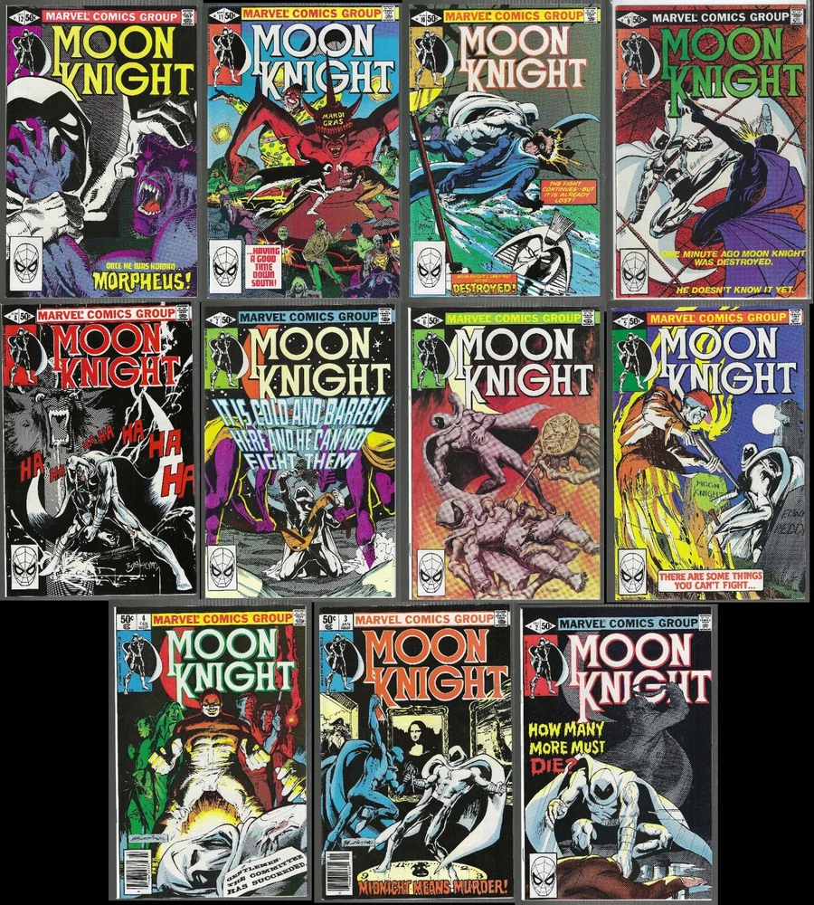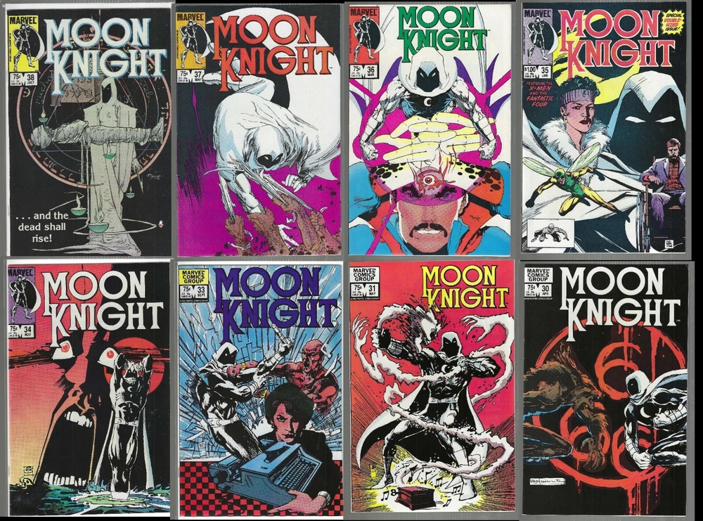 MOON KNIGHT #2-24,26-31,33-38 #2, 3, 4, 5, 6, 7, 8, 9, 10, 11, 12 13, 14, 15, 16, 17, 18, 19, 20, 21 22, 23, 24, 26, 27, 28, 29, 30, 31 33, 34, 35, 36, 37, & 38 HIGH GRADE RUN OF BRONZE AGE MOON KNIGHT GEMS THAT FEATURE MANY 1ST APPEARANCES AND KEYS: #3 ~ 1st appearance of Midnight Man, a costumed thief! #8 ~ Classic Cover art by Bill Sienkiewicz! #12 ~ 1st appearance of Morpheus, a man who turned into a monster! #13 ~ First battle of Moon Knight versus Daredevil! #14 ~ 1st appearance and origin of Stained Glass Scarlet, a former nun who became a vigilante! #15 ~ 1st appearance of Xenos, a psychopath who led an army of rats! #20 ~ Classic Cover art by Bill Sienkiewicz! #21 ~ First meeting of Moon Knight and Brother Voodoo! #23 ~ Classic Cover art by Bill Sienkiewicz! #24 ~ Early Negative space cover! #29 ~ Classic Cover art by Bill Sienkiewicz featuring Werewolf By Night! #30 ~ Classic Cover art by Bill Sienkiewicz ! #31 ~ Classic Cover art by Bill Sienkiewicz ! #36 ~ First meeting of Moon Knight and Doctor Strange! #37 ~ Origin of Marc Spector & 1st appearance of Elias Spector! #38 ~ Final Issue Low Print Run! (LOT OF 35 ISSUES) ALMOST COMPLETE RUN MARVEL COMICS 1980-1984 1ST PRINTS, IN AN AVERAGE OF 9.2/9.6 NM-/NM+ CONDITION! MUST HAVE BOOKS FOR ANY SERIOUS MOON KNIGHT COLLECTION! All photos carefully represent the actual books you will receive! Ships Fast, FREE, and Safely for you! ~~~~~~ These books will ship fast and securely for you! If you have any questions or need anything, please let me know because I'm only happy when you're happy so let's make it happen! Check out my other listings for more Cool Stuf! Here’s a link to the rest of my listed books and you’ll find that I stand behind the items I list, from comics to collectibles and because anything I list is Just Cool Stuf! THANK YOU for looking!! Please check out my other listings that I have for sale. SHIPPING I ALWAYS SHIP BOOKS THE WAY THAT I WANT THEM SHIPPED TO ME! FAST USPS PRIORITY MAIL FOR TRACKING, QUICK, BOXED AND PADDED, INSURED, AND BEST OF ALL IT'S SENT AS SOON AS I RECEIVE YOUR PAYMENT! Item(s) will be shipped within 2 business days after receiving payment. I ONLY ship to United States addresses (Yes, I WILL ship to APO/FPO/DPO?s). ALL photos shown are of the comic book you will receive upon winning the bid. Comic will be shipped to you bagged and boarded then padded safely in a box with a protective layer. Comes from a smoke free home. Payment : Payment must be received no later than 3 days after purchase. I only accept payment via Ebay.com. If for whatever reason you are not satisfied with your purchase(s), please contact me. I am more than willing to resolve any reasonable dispute. If you have any questions about the listing please contact me .