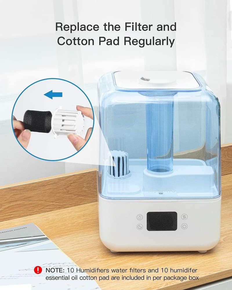 These replacement filters and aroma pads are a game-changer! They fit perfectly in my humidifier, keeping the mist clean and fresh. The filters trap impurities so well, and the aroma pads add a lovely scent to my room. Super easy to install, and the 10-pack lasts forever. Highly recommend for anyone with compatible humidifiers—works like a charm!