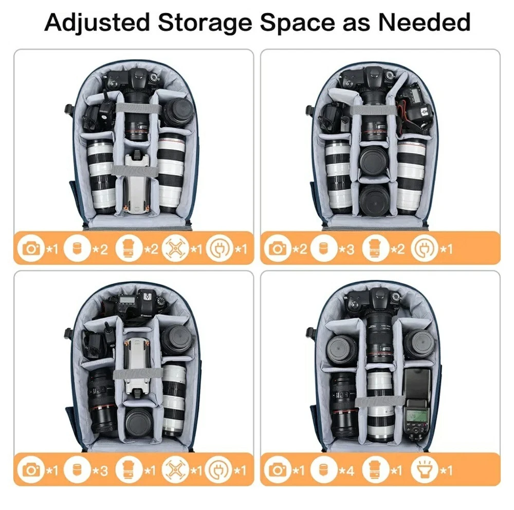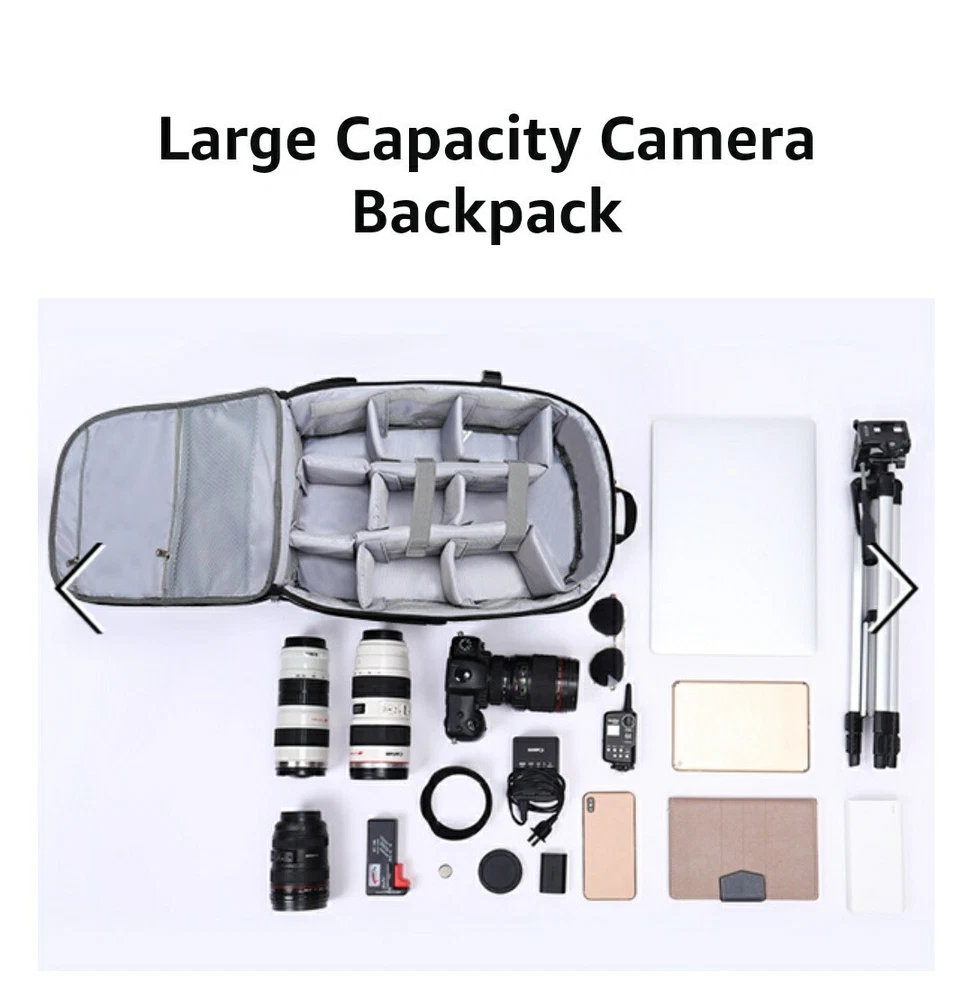 Introducing the Mosiso Camera Backpack - your perfect companion for keeping your camera and its accessories safe and organized during your travels. Designed to fit various camera brands such as Canon, Sony, and Nikon, this backpack is your must-have equipment for photography enthusiasts. Its spacious compartments allow you to store your camera, lenses, and other equipment conveniently. Crafted from premium materials, this backpack is not only durable but also comfortable to carry around with its padded shoulder straps and breathable back panel. Its stylish design also complements your photography gear and fashion sense. Get ready to capture stunning shots and explore the world with the Mosiso Camera Backpack.
