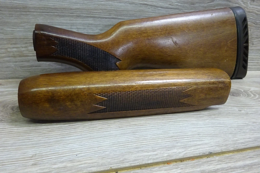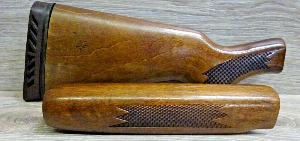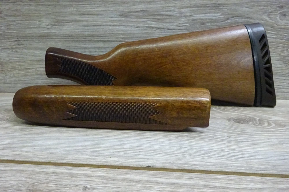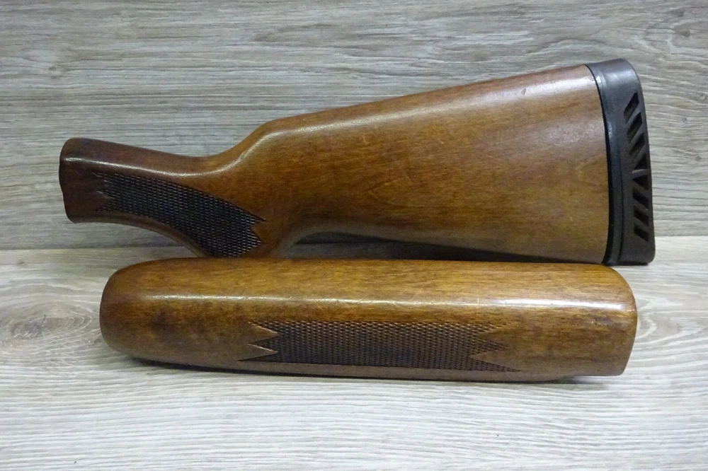This Mossberg 500A shotgun stock set comes with a butt plate and takedown screws in 12 and 16 gauge. The stock is made of wood and metal, with a sleek design suitable for Western Auto guns. This product is perfect for hunters and sport shooters, and is made in the United States. The model number is R310ABR 12g, and it is a great addition to any shotgun collection.