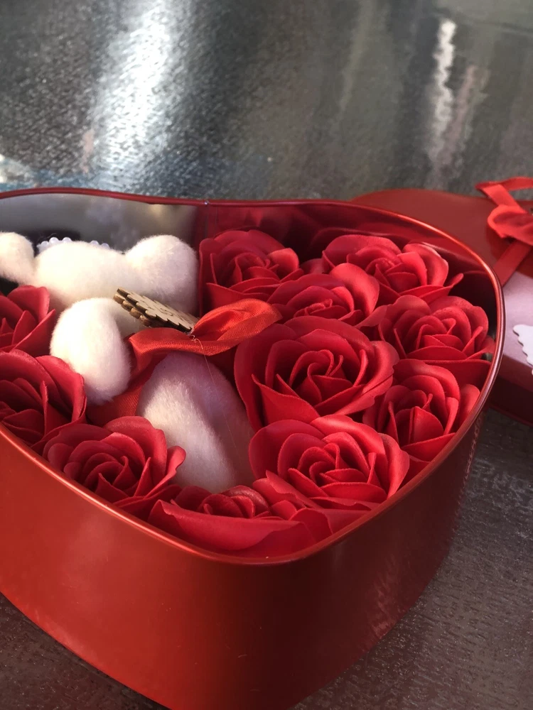 VALENTINE GIFT HEARTH BOX WITH SOAP RED ROSES AND TEDDY BEAR . Condition is New. Shipped with USPS First Class Package. The roses soaps petals (11 soaps roses 🌹)smells awesome, cute little teddy bear , great gift for any especial friend Dimensions: box 7”/ 6” Check my others Valentines Day Gifts Thanks!