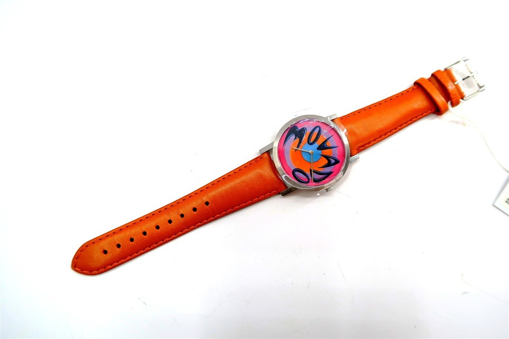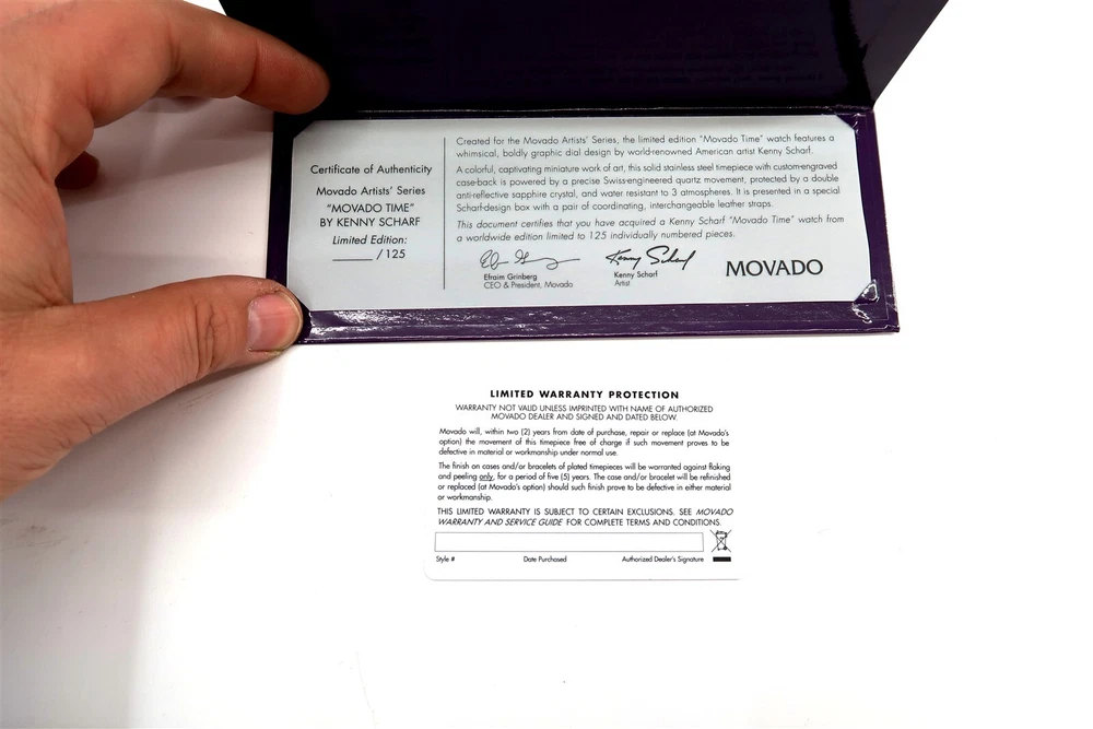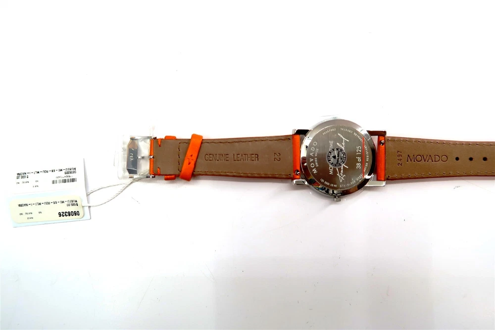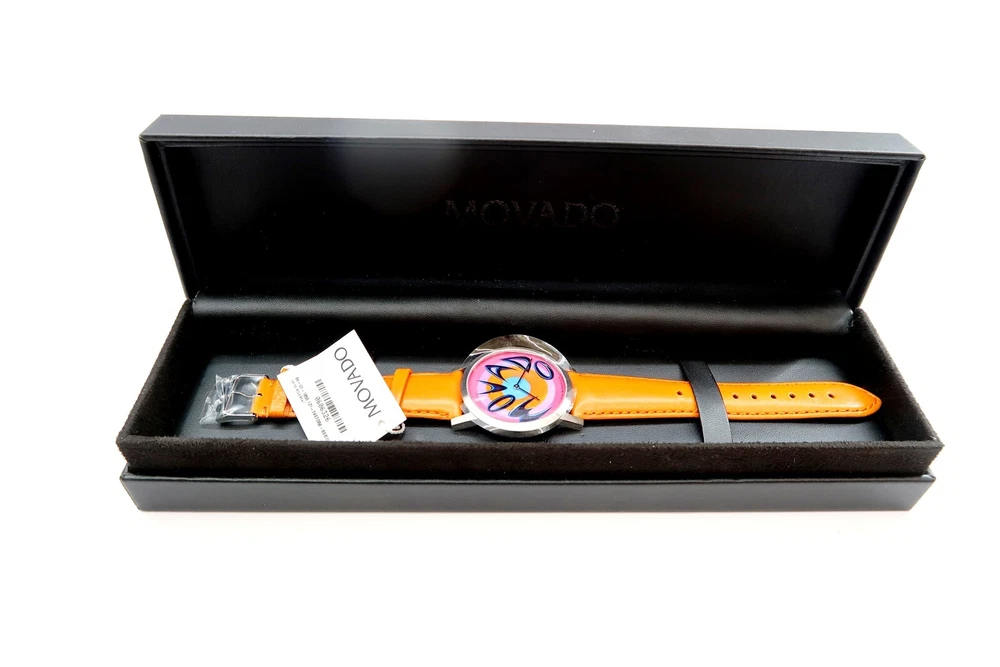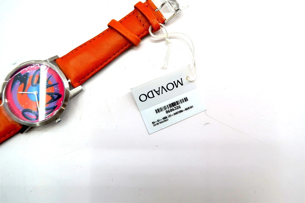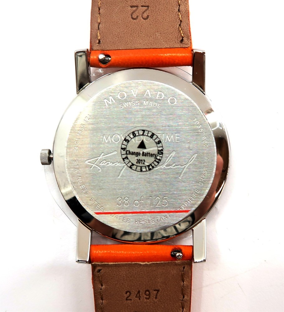 New MOVADO KENNY SCHARF Artist Series MOVADO TIME Watch Limited Edition 38/125 This eBay listing is for a New Old Stock classic Movado Artist Series by KENNY SCHARF watch set that comes as you see pictured in the listing and noted above. This watch is brand new and comes with the original leather wrapped box, colorful Kenny Scharf designed outside box, original warranty card, paperwork and extra black leather watch band - just in case you don't like the original band that is on the watch now. This is a very limited edition watch number 38 of only 125 made. The battery inside had expired from age so it was replaced. If you collect classic Swatch Watches, then please check out my other listings in my ebay store!! I just picked up close to 400 NOS Swatches from a local auction where I'm told the consignor had the largest Swatch Watch collection in the world!! Many of the watches are Special Editions, Limited Editions, Boxed Sets, Scarce and rare models and other vintage Swatches. Watch name : MOVADO TIME Model : Limited Edition Kenny Scharf Artist Series New Battery : Yes (due to age, the original battery was removed with a new battery installed) Features/Notes : Works Great! The original Movado Artists' Series was launched in 1987, inspired by some of the company's watches that are in collections in some of the world's leading museums. The Series contains commissioned, limited edition pieces designed by artist Kenny Scharf. Kenny Scharf presents six stunning graphic dial designs to the Artists' Series. The Series contains six watches named Blurple Time, Movado Time, Universal Time, Starring the Star, Time Flies, and Ontime. Each Kenny Scharf dial design is framed in a simple round stainless steel case featuring a custom-engraved case-back. Every timepiece includes two interchangeable leather straps that play off of colors found in the dial. There are a total of 125 pieces of each of the six watches made in the series. These watches range from $695 – $3,495 when new. They have a museum face steel case, sapphire crystal and Swiss quartz movement. I believe that this series came out around 2010. I'll have a few other Movado watches in this series listed in my ebay store at this time as well. Seller Location Reference - Rolling Cart/Bin 1 BID IN CONFIDENCE – CHECK MY FEEDBACK! My goal is your satisfaction. I leave positive feedback right after the payment is received for all orders!! If you plan to leave anything less than positive feedback and 5 stars - please let me know so that I can work out any problems that you may have. I aim to please!! SHIPPING & HANDLING FOR US BIDDERS We ship ASAP upon payment as noted above within 1 business day 99% of the time!! We normally pack up your new treasures 2 - 3 times a day and ship using USPS and Fedex Ground so that you get your items in a timely fashion. As always - there is no charge for local pickup on any of my items!! SHIPPING AND HANDLING FOR INTERNATIONAL BIDDERS Import duties, taxes and charges are not included in the item price or shipping charges. These charges are the buyer’s responsibility. Please check with your country’s customs office to determine what these additional costs will be prior to bidding/buying.” THANK YOU AND HAVE A WONDERFUL DAY!! Powered by SixBit's eCommerce Solution