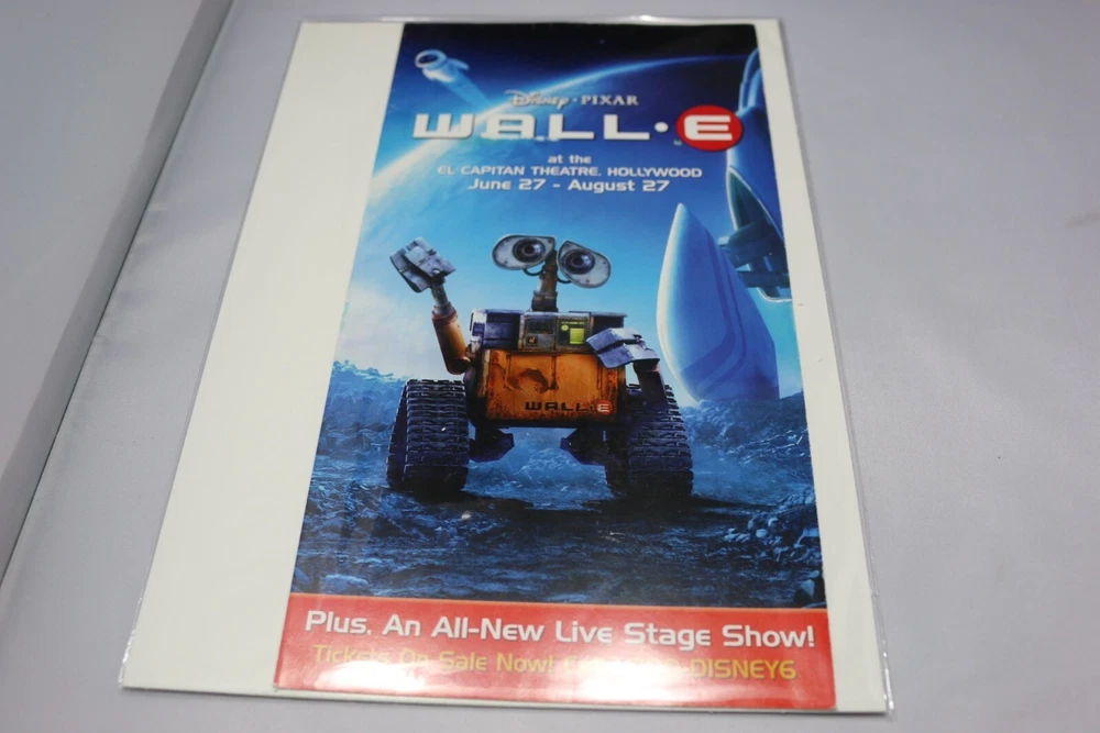 MOVIE MEMORABILIA Wall E Pixar Walt Disney Advertisement Theatre MOVIE MEMORABILIA Wall E Pixar Walt Disney Advertisement Theatre Original Ad from when Wall-E was being released ORIGINAL Really Cool & Really Awesome! We are very proud of our service and the quality of our items. See our over 8,600+ unique positive feedbacks for a reflection of our service and items. EVERYTHING WE SELL ARE ORIGINAL ITEMS! In other words ... nothing we sell is made by us, home made or counterfeit in any way, shape or form! All items are authentic and sold under the first sale doctrine, which meets and exceeds all laws and regulations under U.S. law, so bid with confidence. All from a personal and legally bought and/or obtained personal collection. If you have any questions or concerns, please ask them before bidding. You are not bothering us by asking us questions at all. A lot of the items we offer will never be offered again or at this price! The price can go up if the item gets popular and has no bids but has a lot of eyes. So it's best that you take advantage of the price and lock it in now by bidding or buying it now. We do combine shipping charges on many categories like multiple action figures or multiple trading cards. Check the listing description to make sure what's up but we always try to combine shipping costs to save you money! Ask us too via messaging. We can tell you about combined shipping or make a special listing just for you that will have a combined shipping charge. We do run some great promotions and/or coupons from time to time! So please add our store to your favorites so we can send you deals and coupons! If you see an item with "Make Offer", send us an offer, we will entertain it. We are a USA born/owned and operated store. Everything ships from within the USA. Everything comes from a smoke-free and pet-free enviroment. Everything is handled with care and professionalism. We ship everything as if we are buying it for ourselves i.e. how we want our items to arrive. We take great care in packaging your item. Thanks for supporting American sellers like us! Be safe and be well. BId or Buy It Now Before It's Gone!