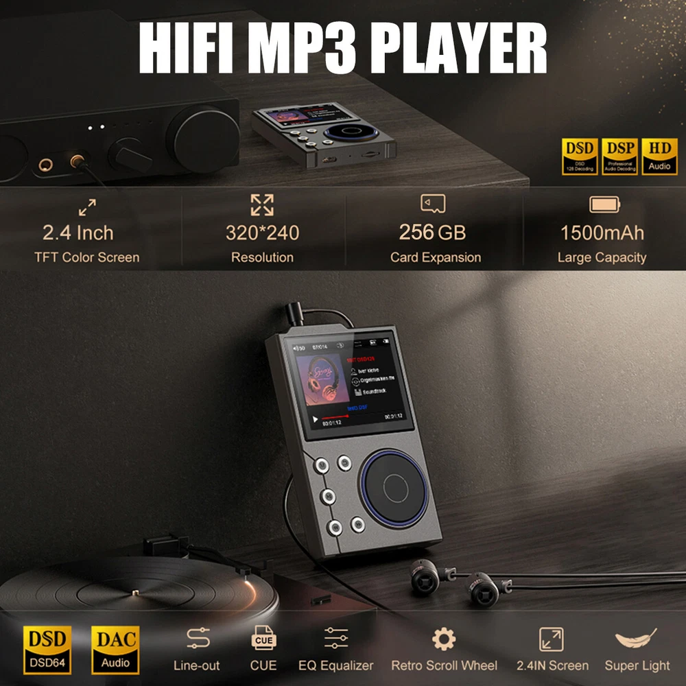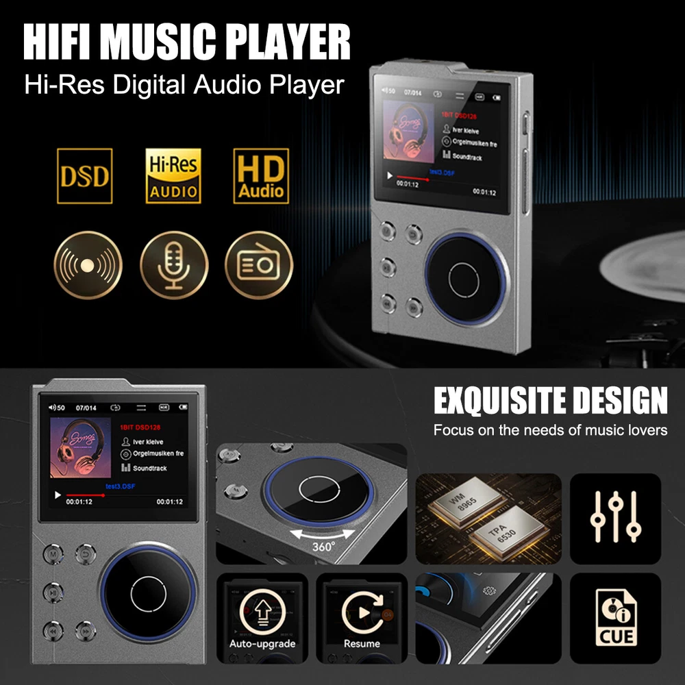 Product Description Features: 1.2.4-inch TFT display, clear and bright. 2. High-quality zinc alloy unibody, outstanding texture 3. Voice recorder function, not only can record audio, but also can record music and songs. 4. Support radio, make your life more convenient 5.TF card expansion, maximum support for 256GB 6. [Optional 3.5mm Headphone Output and Line Output] Support 3.5mm headphone output and line output, support all kinds of headphones/earphones, speakers, car stereo (connect with AUX cable). In addition, the simple button layout, unique scrolling control wheel and graphical user interface make it easy to use for beginners and seniors alike! Specifications: Model: HIFI Music Player Size: 97MM*60.4MM*13.9MM Software language: English and other languages Product weight: about 117g Display: 2.4-inch 320 * 240 Charging voltage: 5V/1A Charging time: about 3 hours Bluetooth version: 5.3 Total Harmonic Distortion: <0.49%+-0.2 Signal-to-noise ratio: 93DB+-2DB TF card expansion: ≤256GB(not included) Audio Format: Support MP1, MP2, MP3, WMA, WAV, APE, FLA, AAC, M4A, OGG, ALAC, DSF, DFF and other formats of audio playback. Recording Format: WAV Interface: TYPE-C USB2.0, Charging Analog Output: 3.5m analog output Operating Temperature: -5℃~40℃ Celsius Package Included: HiFi Music Player *1 USB Cable *1 User Manual *1 Payment We accept PayPal only. If buyer want to delay the payment because of financial problem, please contact me by the ebay message within 3 days Payment via PayPal (PayPal accepts all major credits/debit cards and eCheque) ECheque payment will tak e 3-10 days to get clear, thus DELAYing the shipment. Shipping Handling time: 1 business day (Orders are not processed on weekends & holidays) Tracking information will be sent once item is shipped. Local pick-up is unavailable at the moment. For international shipping and shipping to Guam, Hawaii and Alaska, Please contact us before placing the order. Item is shipped to ebay address. Leaving correct address can minimize delay. Terms For any issues with Defects, Return, Item Exchange request, please contact us first and send us a message first before opening any type of case or request. We devote ourselves making EVERY CUSTOMER in 100% Satisfactory and resolve any problem. We highly value and appreciate your business. Thank you. No returns will be accepted without an RMA number. Please contact us for the RMA number. Return is acceptable within 30 days of delivery. Return for replacement or money back is optional. Returned items must be in the brand new, unaltered and resalable condition. Seller is not responsible for any labor cost, expense in a dealer store, or damage due to wrong installation. Returns Return is accepted within 14 days after the buyer's receiving the item. (Excluding contrived damagement or misusage).100% money-back Guaranteed! All product will be tested in 100% before delivery.If the item is defected by the processing of postage,Buyer has up to 14 days from date of receipt for exchange of a new one.All shipping charges for returned products are to be paid by the buyer,Please contact us for the return address Contact Us All messages will be answered within 24 office hours. Please contact us either by clicking "contact seller" in the "purchase history" section or simply click "ask a question" at the bottom of this page. If you are unsatisfied with our item or service, please contact us before leaving any feedback. We are committed to resolve all issues in a friendly and satisfactory manner. We always reply to messages within 2 business days (off-duty at weekend). If you do not get a response from us, then please check your junk or spam mailbox. powered by