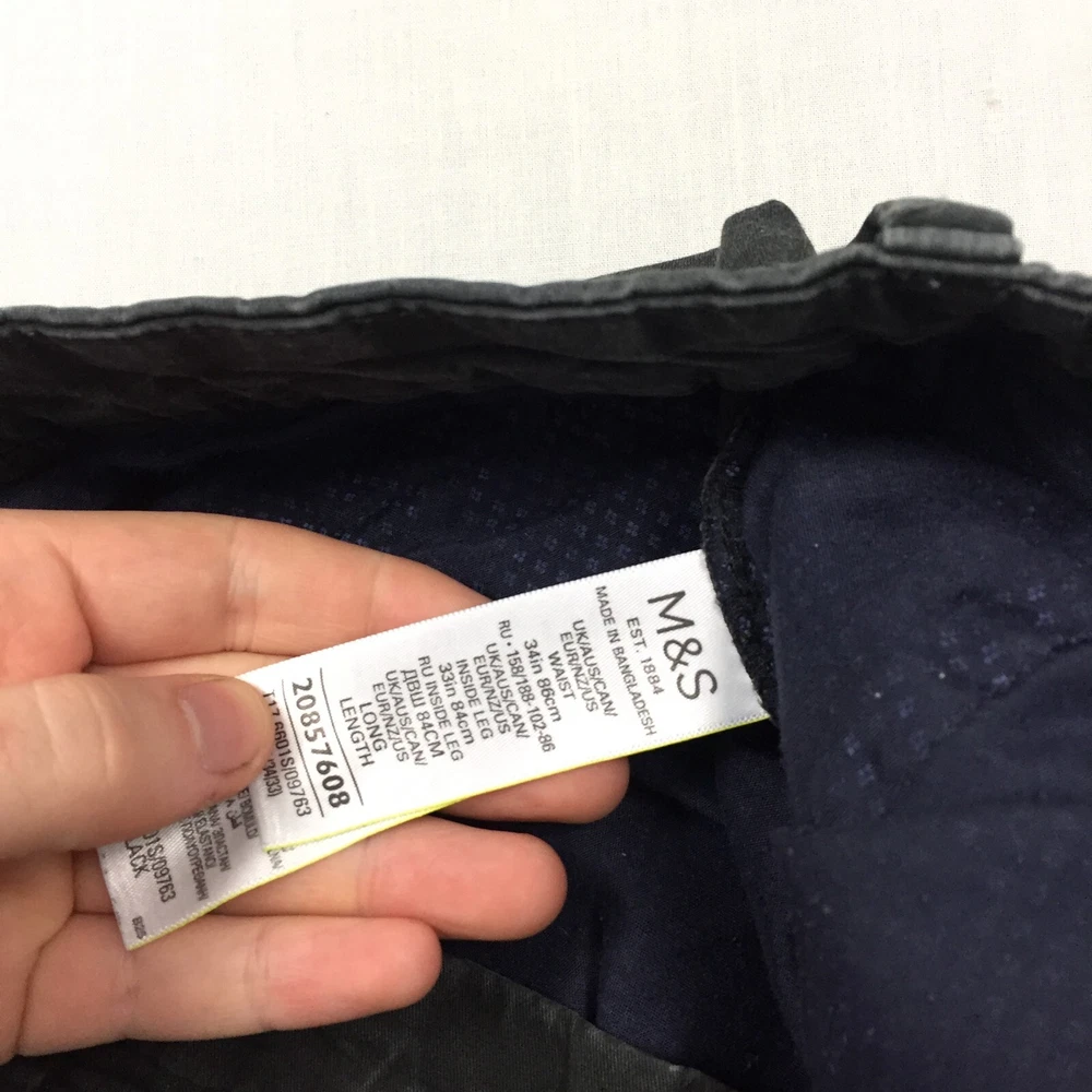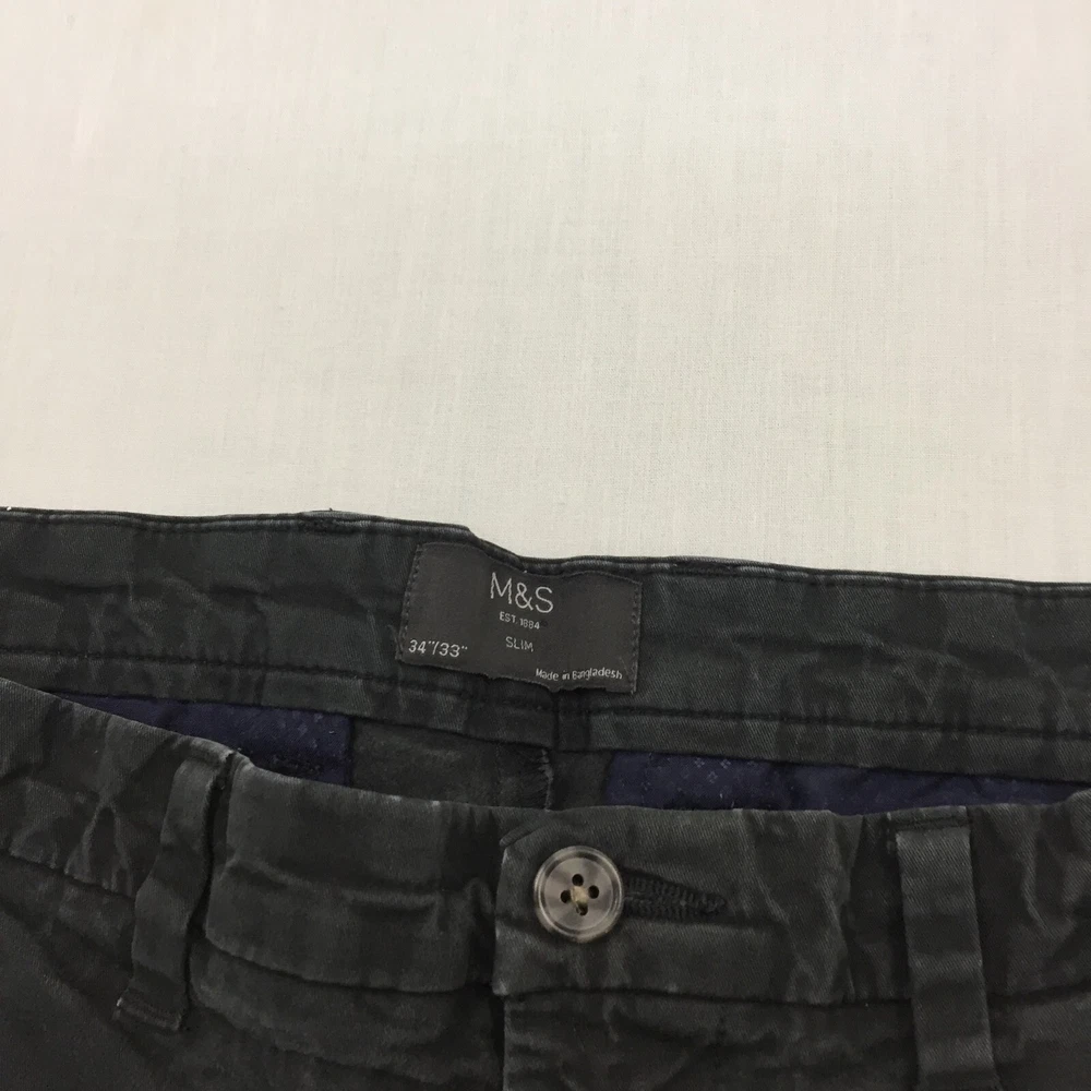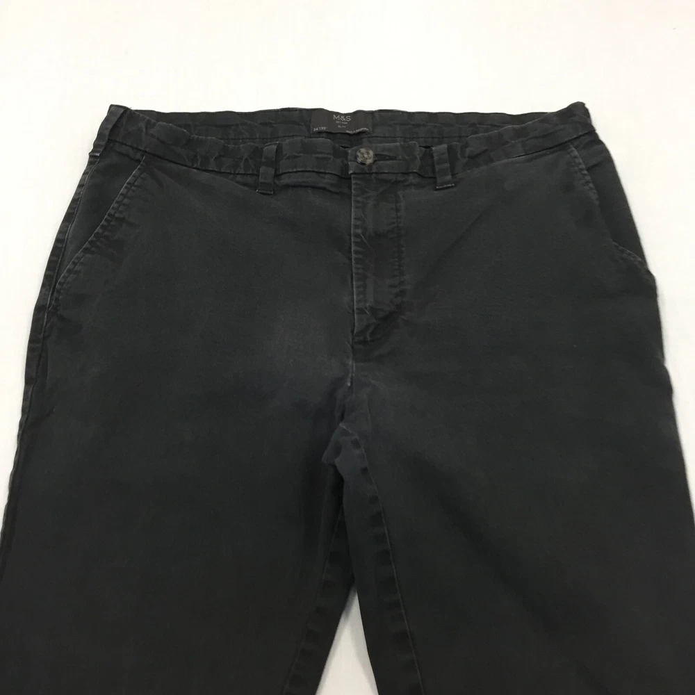 Rise: Mid (10-12 in) Garment Care: Machine Washable Colour: Black Vintage: No Material: Cotton Blend Size: 34 Size Type: Regular Pocket Type: Coin Pocket Department: Men Handmade: No Fit: Regular Type: Trousers Style: Chino Leg Style: Straight Fabric Type: Canvas Seller Notes: “Good used condition, check below for full description & photos.” Accents: Button Waist Size: 34 in Country/Region of Manufacture: Unknown Pattern: No Pattern Occasion: Business, Casual, Travel Personalise: No Inside Leg: 30 in Season: Autumn, Spring, Summer, Winter Closure: Button Brand: Marks & Spencer