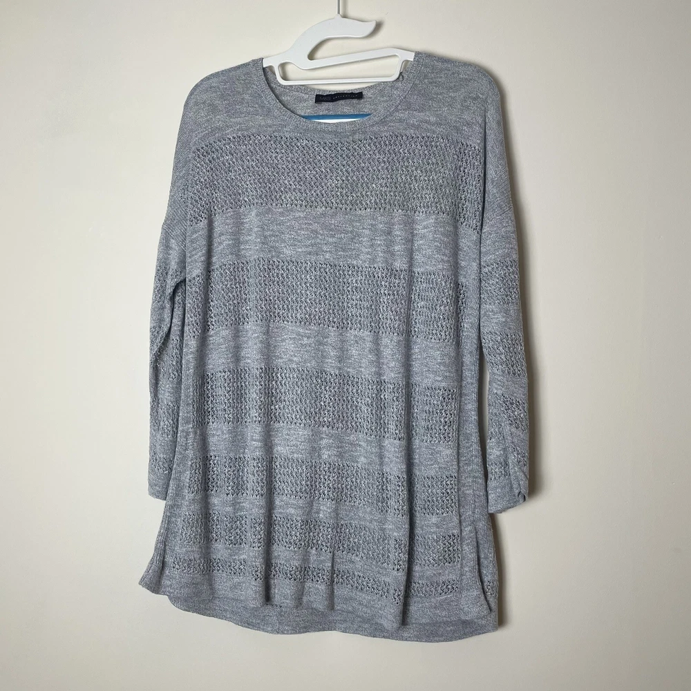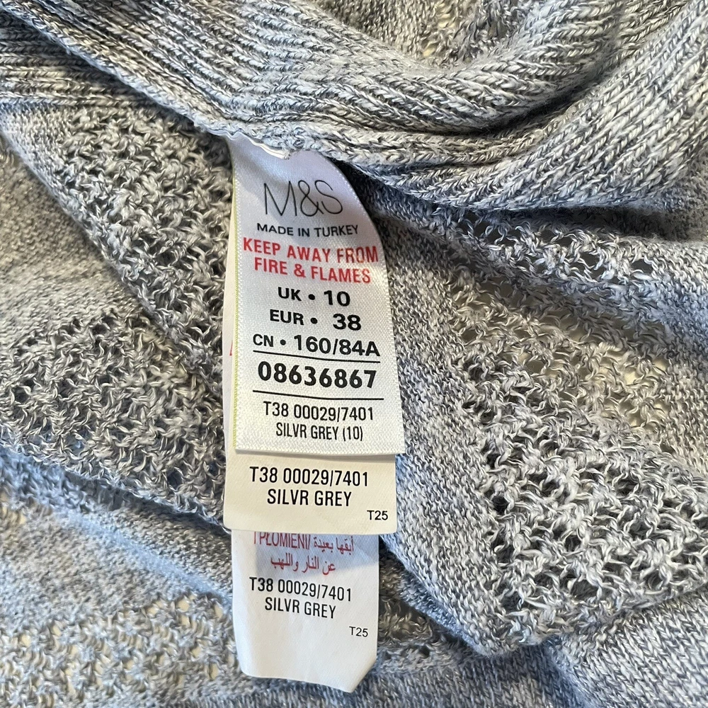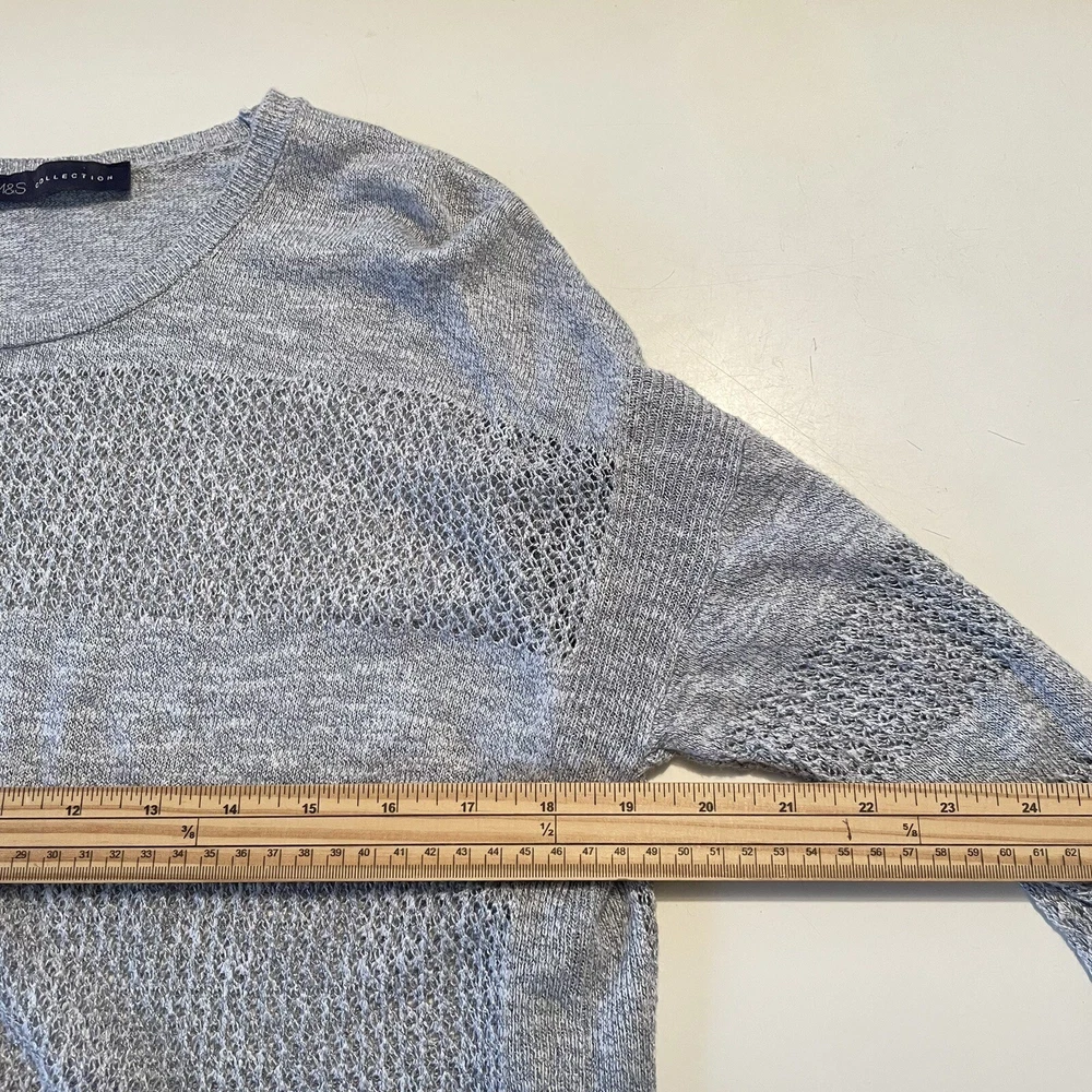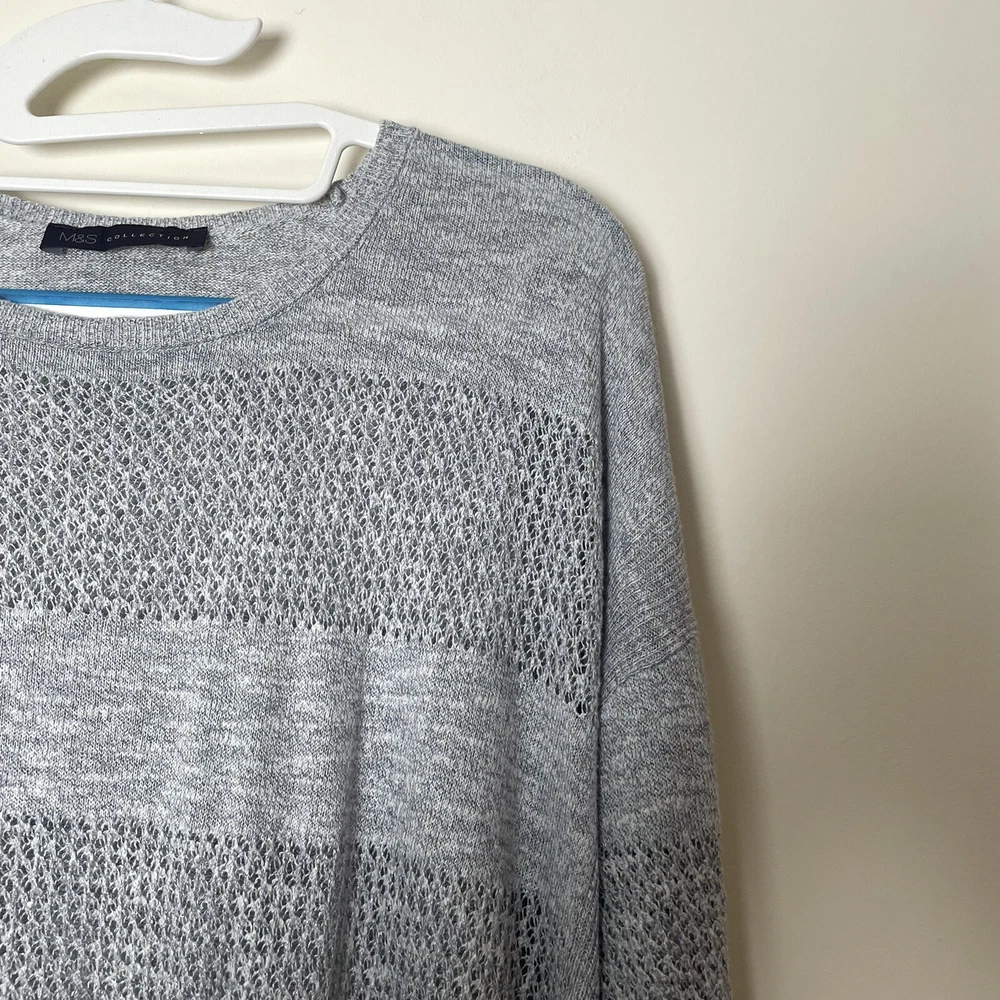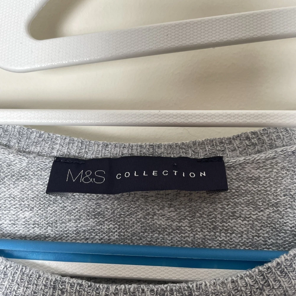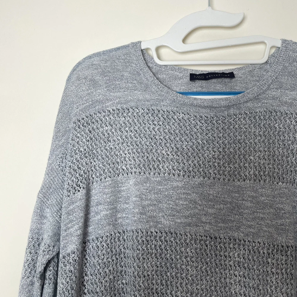 Style: Pullover Knit Style: Tight-Knit Type: Jumper Accents: Knitted Season: Autumn, Spring, Winter Brand: Marks and Spencer Size Type: Regular Sleeve Length: 3/4 Sleeve Neckline: Round Neck Theme: 90s Character Family: N/A Fit: Regular Colour: Grey Closure: Pullover Department: Women Pattern: Striped Character: Andrea Occasion: Casual, Travel Fabric Type: Knit Features: All Seasons, Stretch Garment Care: Machine Washable Vintage: No Material: Cotton, Viscose Size: 10 Sleeve Type: Regular