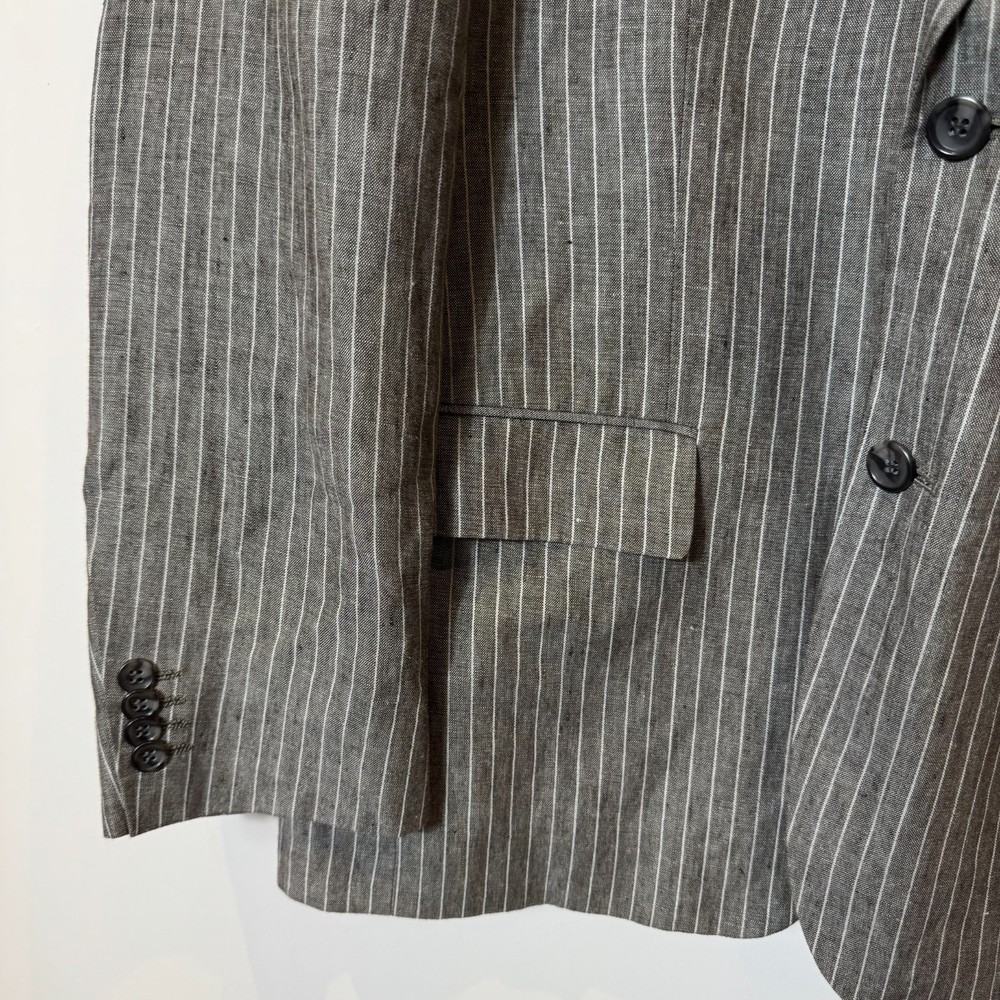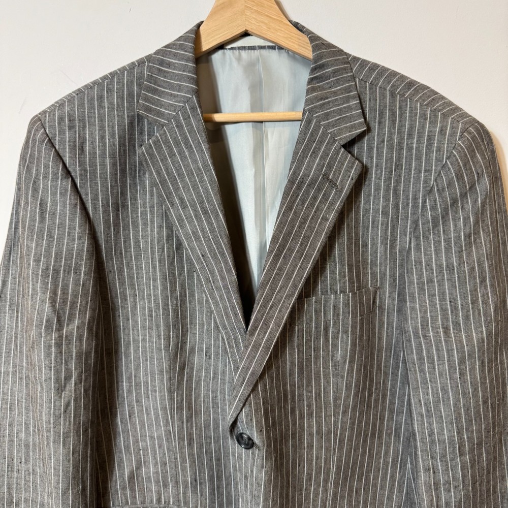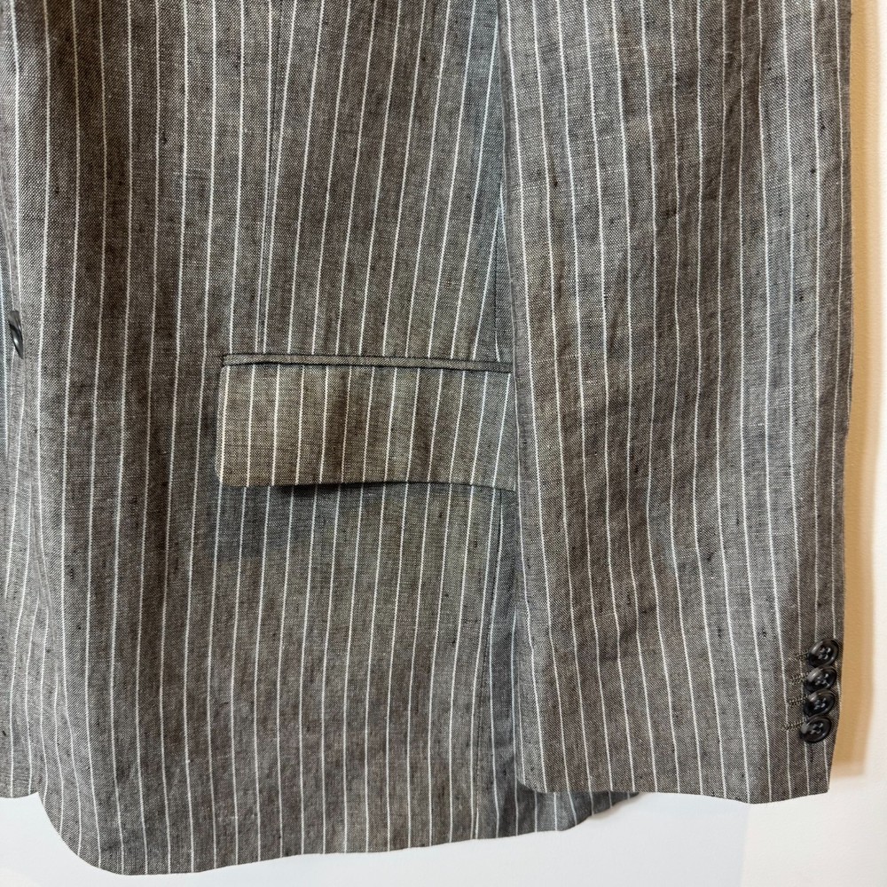 M&S Collezione 100% Pure Linen Blazer 42S Grey Pinstripe Italian Fabric Jacket