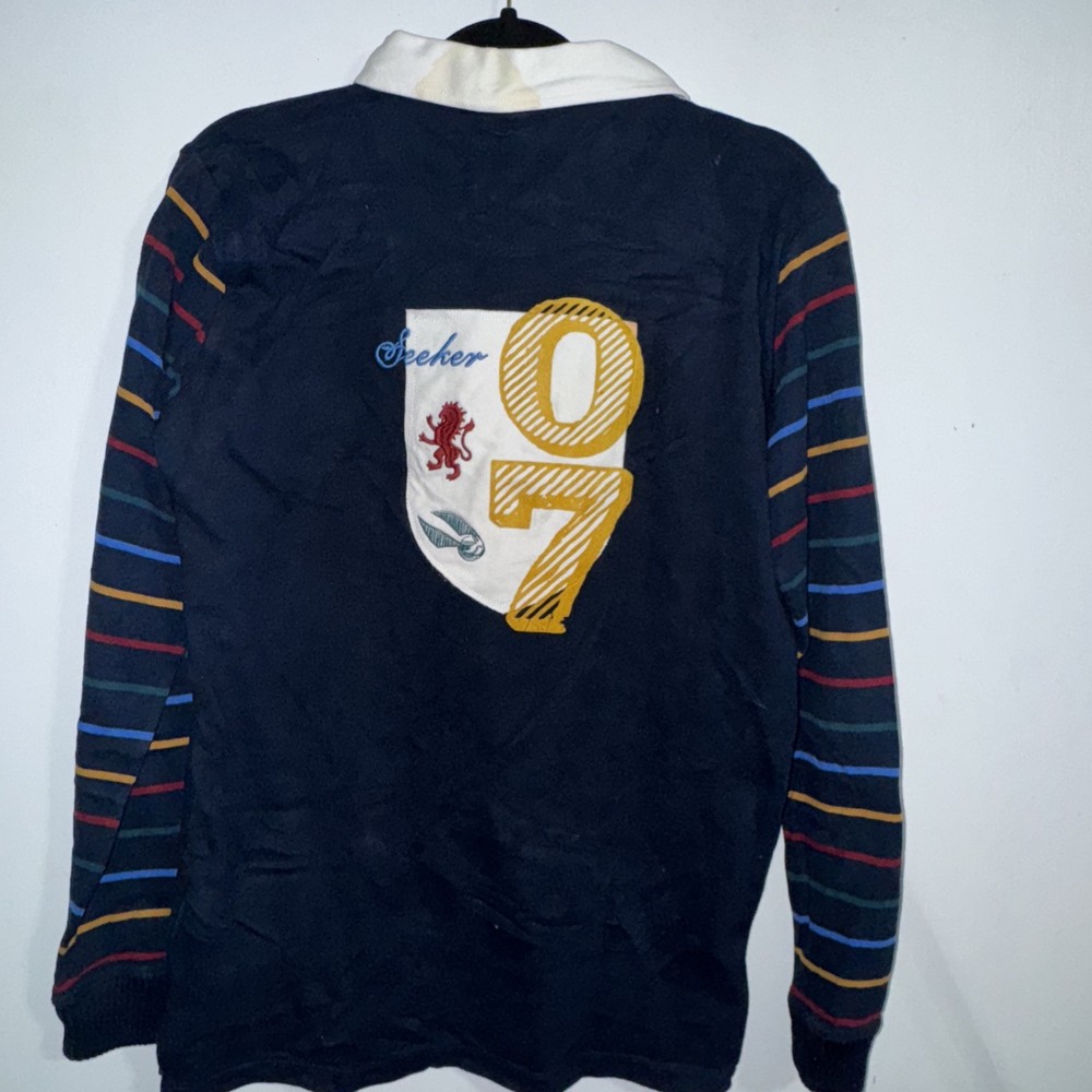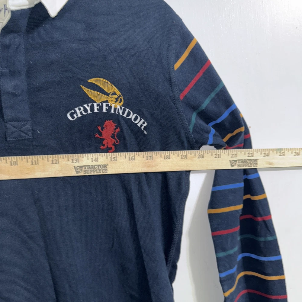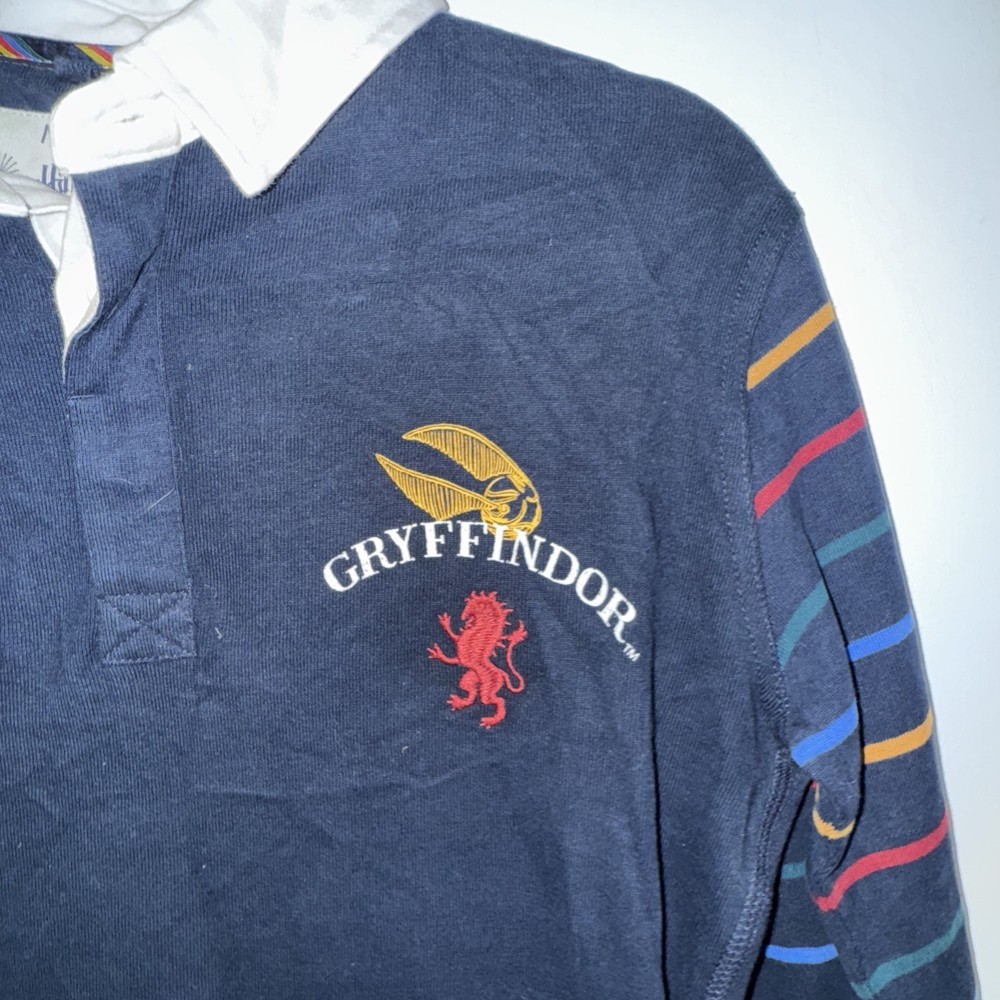 The M&S Harry Potter Rugby Polo Long Sleeve Shirt is a stylish and comfortable option for boys aged 15-16 who are fans of Gryffindor. Made by the brand M & M, this shirt features a classic collared neckline, long sleeves, and a regular fit. The shirt is in a striking blue color, perfect for representing Team Gryffindor with its rugby-inspired design. Ideal for casual wear or sporting activities, this polo shirt is a must-have for any young fan of the Harry Potter series.