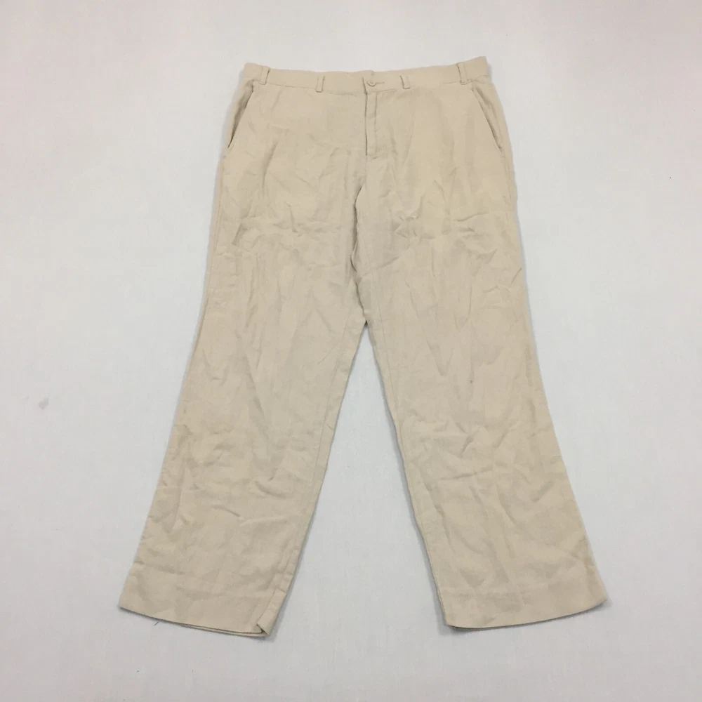 M&S Linen Mix Trousers Mens W36 L29 Straight Fit Chino Beige
